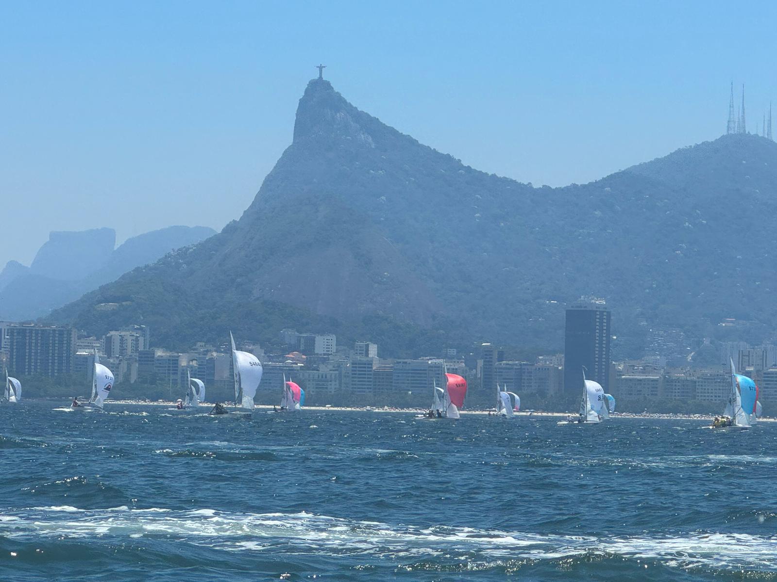 Wir nutzten diese als Training vor der Weltmeisterschaft. Die Temperaturen waren eine sehr große Umstellung, da es zwischen 25 und 35 Grad und es an manchen Tagen auch sehr schwül war. Wir hatten fast jeden Tag um die 12-15 Knoten, die sich über den Tag aufbauten. Wir trainierten zusammen mit zwei anderen deutschen Teams und segelten auch viele Trainingsrennen gegen weitere Teams aus verschieden Nationen. Silvester feierten wir im Segelclub und konnten das riesige Feuerwerk sehen. Nach den täglichen Einheiten machten wir auch noch ein wenig Sightseeing. Vom Zuckerhut konnten wir das Regatta Gebiet von oben angucken und Strömung und Wind beobachten. Am 3 Januar ging die Weltmeisterschaft offiziell los und es gab eine Eröffnungszeremonie. Jedes Land lief in der Parade vor und die Flaggen jeder Nation wurden gehisst. Am 04.01. stand dann die Vermessung und das Practice Race an. Am 05.01. war das erste Rennen.
