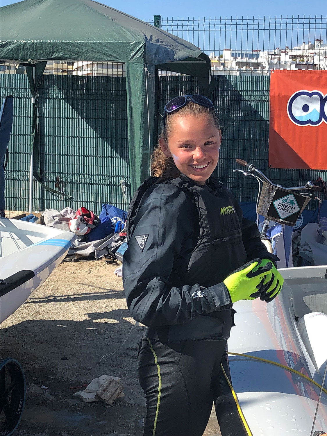 Der Tag beginnt meist um zehn Uhr mit einer ausführlichen Besprechung. Danach geht es zum Hafen. Trainer Daniel guckt sich jeden Tag alle Boote an und bespricht mit den Teams individuell, was es zu beachten gibt. Dann geht es auf s Wasser, gestartet wird immer um 14:00. Zum Abendbrot treffen sich Janne und Leonie mit den anderen Teams. Die sind fussläufig in einer Villa mit ihrem Trainier Daniel und Monika Krauß (Mutter von Florian Krauß, Bayern) untergebracht. Dort werden unsere beiden Seglerinnen liebevoll mitbetreut und verköstigt.