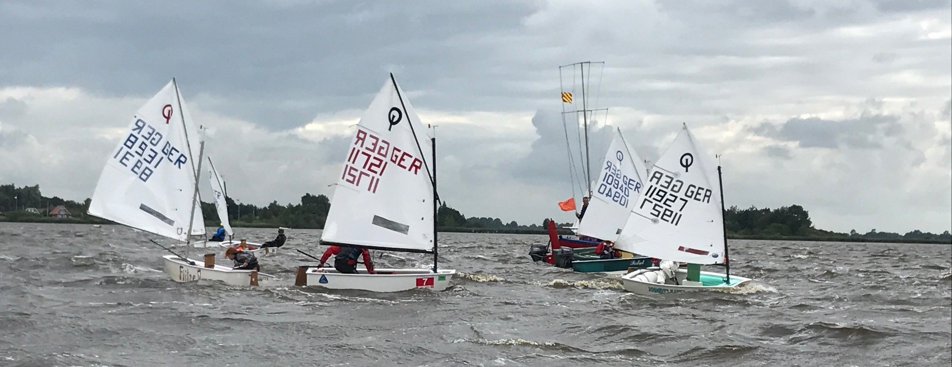 Das „Kleine Meer“ ist ein See, nicht gerade groß. Der Wassersportverein Emden liegt an einer großen Rasenfläche. Der erste Start war um 13:00. Davor mussten wir alles aufgebaut haben; also das Boot startklar gemacht, das Segel aufgebaut und alles was noch dazu gehört . Wir waren um 11.00 Uhr dort, so dass wir genug Zeit hatten. In der Steuerleutebesprechung wurde noch mal kurz erklärt, dass Schwertarbeit wichtig wird und dann ging es auf den See. Der Kurs lautete 1-2-3-1-2-3-Ziel.