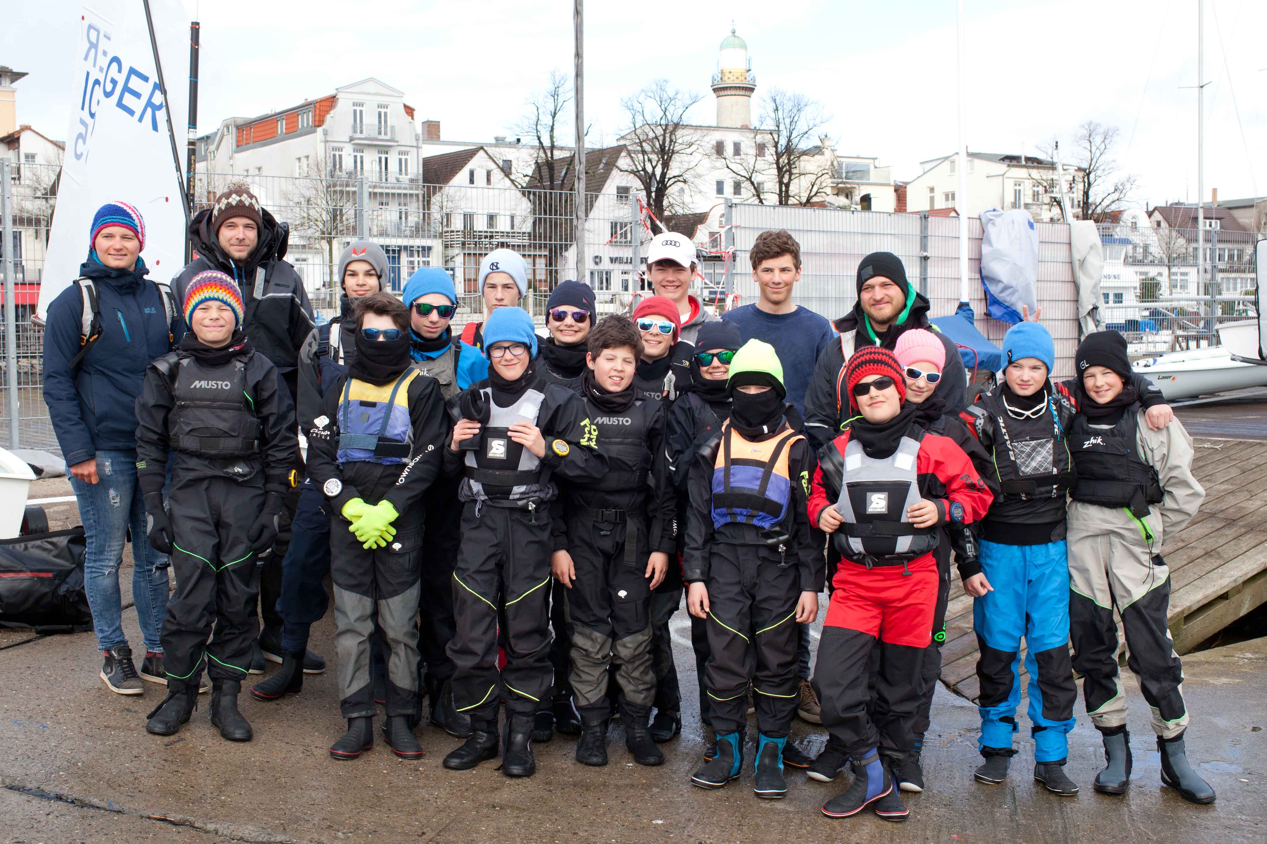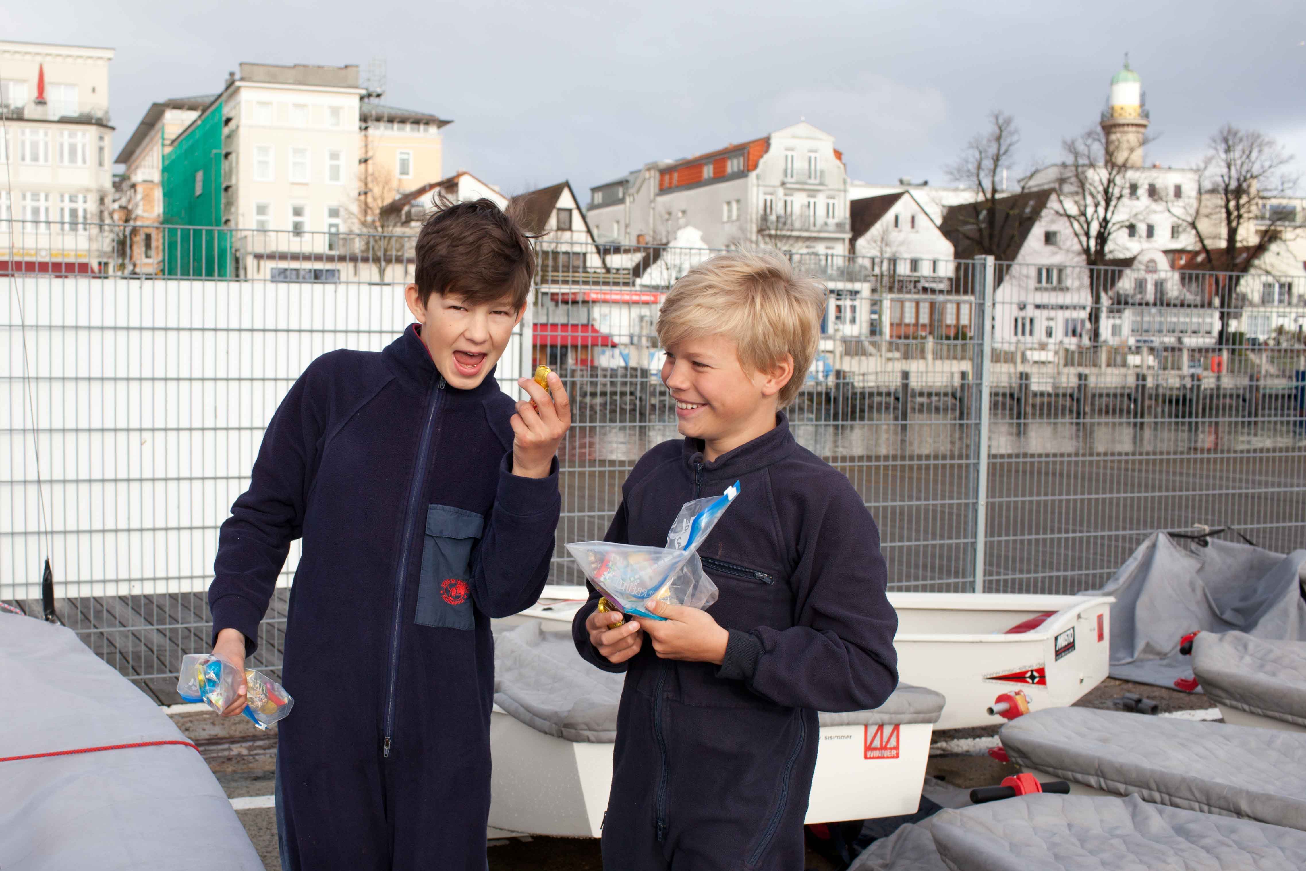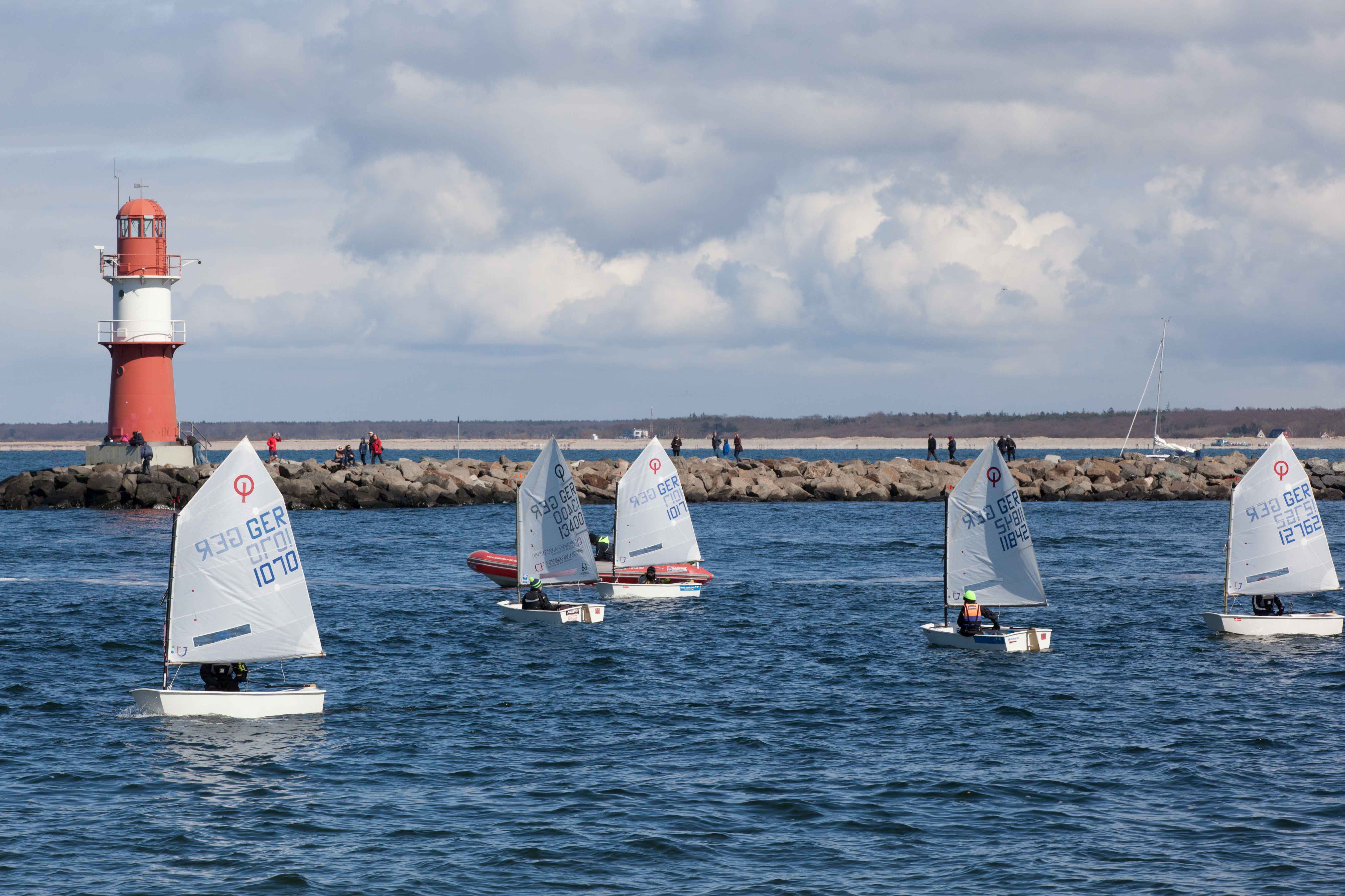 Das Wetter an Ostern hätte nicht abwechslungsreicher sein können. Regen und Sonnenschein lösten sich ständig ab. Entsprechend waren die Windverhältnisse. Mal blies es ganz ordentlich, wie am Karfreitag bei der ersten Trainingseinheit oder es hielt sich in Grenzen wie am Nachmittag des Ostersonntags. Während sich die wenigen Eltern vor Ort in den Strandbars in der Sonne freuten, übten die MSC Opti-Segler/-innen trotz einer schwachbrüstigen Brise Wettfahrten im Team. Am Samstagnachmittag lief eine Wetterfront aus der Polarregion auf die Ostseeküste zu und nach einer Umfrage unter den Segler/innen, wer denn bei Böen mit bis zu 39 Knoten sein Material testen wolle, schien das Sportprogramm in der Halle schon deutlich attraktiver zu sein. Schon am Freitag hatten die Opti-Segler/innen nach der ersten Trainingseinheit die Chance, an ihrer Kondition zu arbeiten. Sie durften sich per pedes in die Jugendherberge aufmachen, die etwas außerhalb liegt. Das Trainingslager bestand aus den Opti-Seglern Paul, Leonie, Helena, Henri, Henrik, Janne, Willy, Kajus, Theodor, Viktor, Jonas, Anna und Caspar, dies es sich nicht nehmen ließen, sich auf die bevorstehenden Ausscheidungsregatten für die EM/WM vorzubereiten. Bei den Laser-Seglern waren Leonie, Jasper, Valentino, Tom und Hauke gesehen worden sowie die 420er Seglerinnen Marla und Hanna. Die kulinarische Versorgung war sichergestellt; erfreulicherweise gab es ganz in der Nähe am Strom Fischbrötchen, Crepes und Hot dogs. (O.M., Fotos: T.K.)