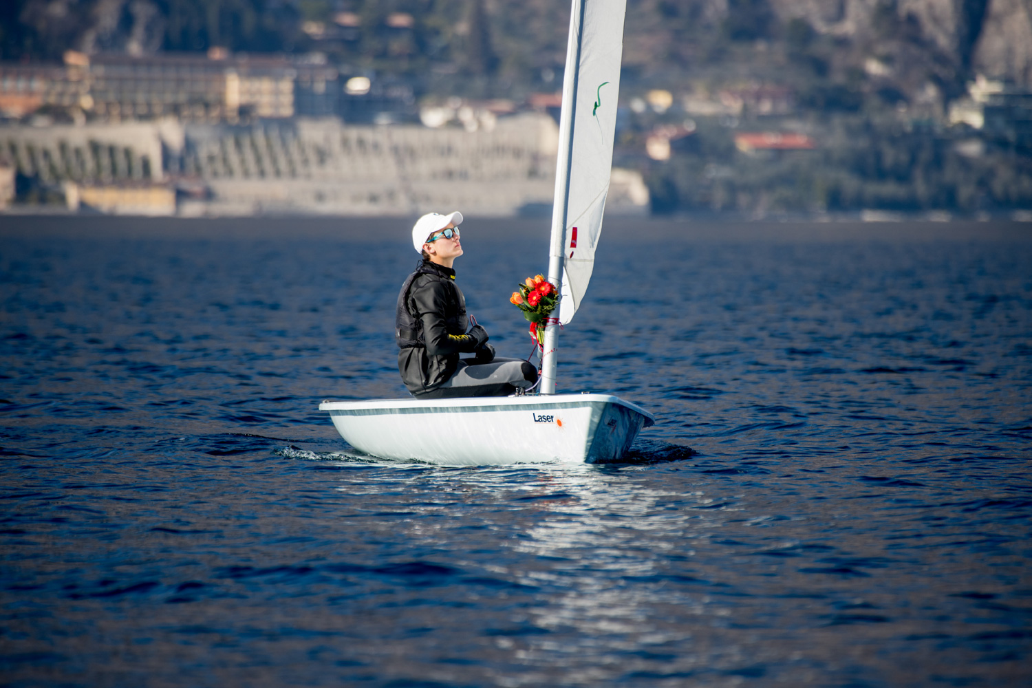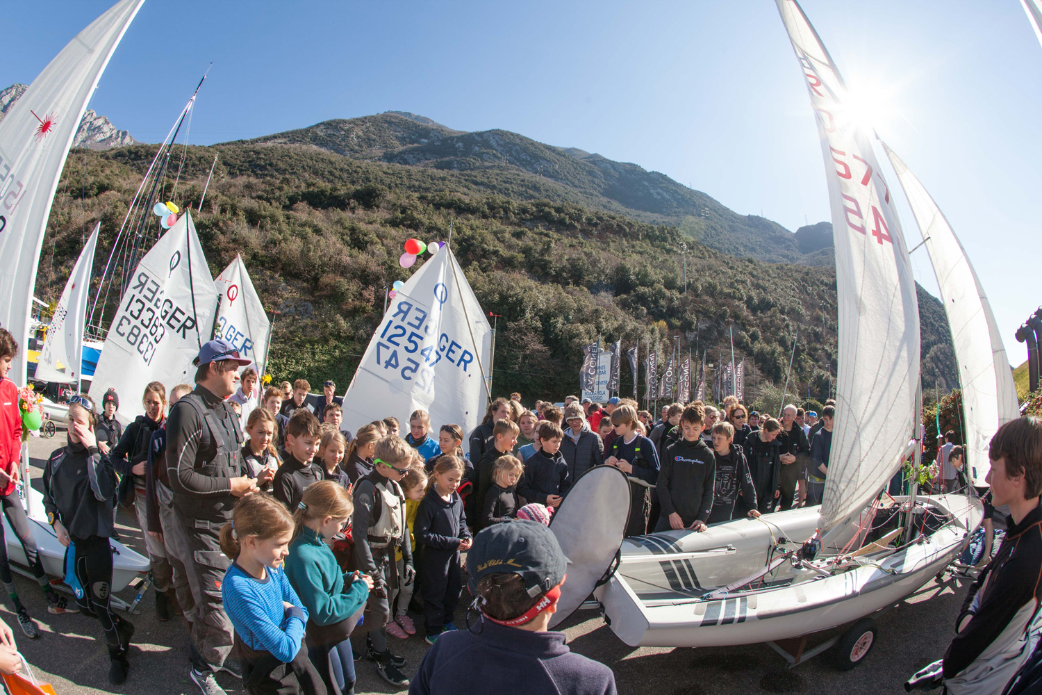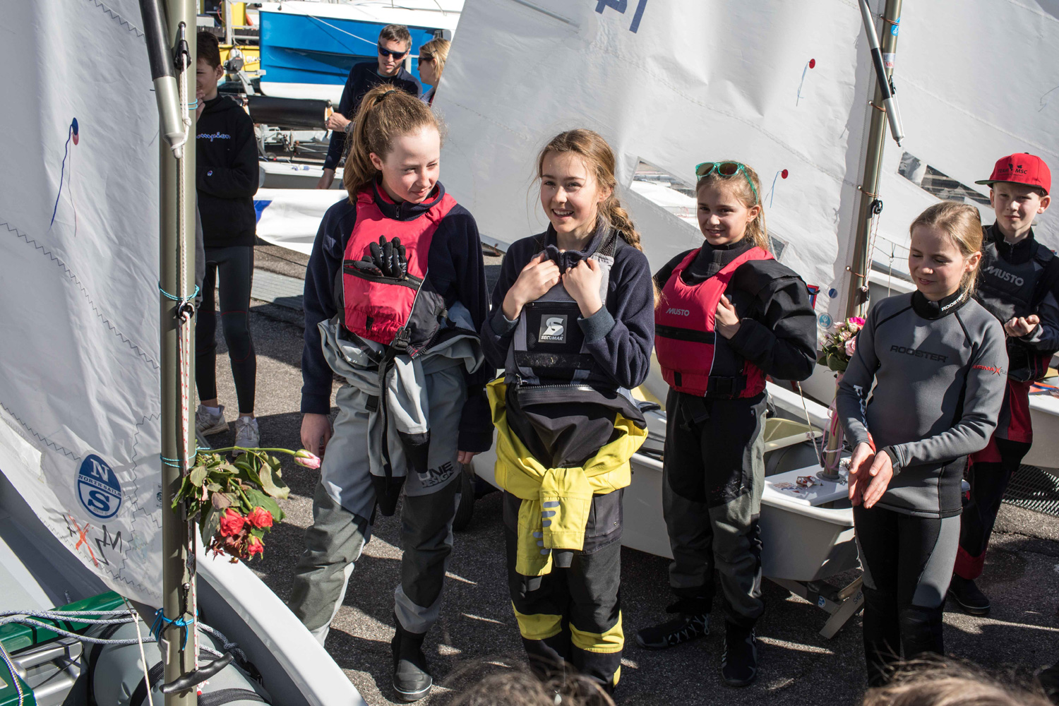 Bei strahlendem Sonnenschein und einer fast zu leichten Brise wurden heute nach dem obligatorischen Massenbild der gesamten MSC Entourage mit großem Clubstander neun Boote getauft. Vor allem die sechs Optimisten waren üppig mit Blumen und Luftballons geschmückt, die beiden Laser und 420er, die ebenfalls neue Namen erhielten, stylten sich eher getreu der Maxime „weniger ist mehr“. Die Namen gaben allerlei Anlass zu Spekulationen und lustigen Gedanken: Till befindet sich nun beim Segeln gedanklich auf „Wolke 7“, Esther segelt schneller als der Blitz, auch wenn man schon französisch parlieren sollte, um „Foudre“ richtig zu übersetzen. „Showtime“ ist nun bei Svea angesagt, während Tristen mit „Andiamo“ drängelt, schnell wieder aufs Wasser zu kommen. Jan entschied sich für die numerische Lösung und segelt nun „Iskareen XIII“. Die 420er Segler Marvin und Jesper machten den am häufigsten an Bord gebrauchten Satz „Halt mal eben“ zum Namen ihres Bootes, während sich Emil und Max für eine segelnde „Wohngemeinschaft“ entschieden. Die beiden Neuzugänge in der Laserflotte heißen „Yellow Ribbon“ und „ ja gleich“ und werden von Jonas und Paul gesegelt. Nach der Taufe ging es mit den bis über Sprit und Mastspitze mit Luftballons verzierten Booten direkt zum Training aufs Wasser – auf dass mit dem programmgemäß einsetzenden Ora die Dekoration abgesegelt wird.