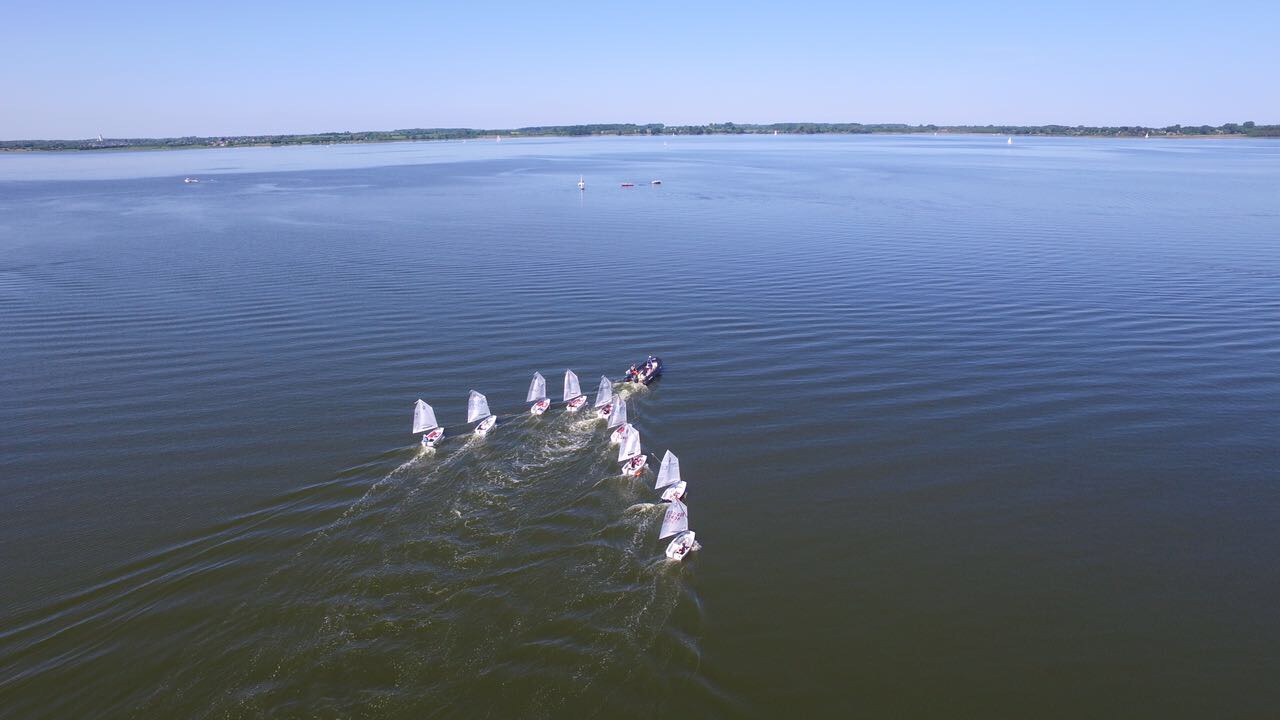 Über 100 Optisegler, jugendliche Bahia- und 420er Segler und einige Föhrer Piratensegler genossen dieses Jahr im MSC Trainingslager in Borgwedel perfekte Bedingungen. Kein Regen, erst stürmischer, zuletzt sehr mäßiger Wind und strahlender Sonnenschein machten Lust auf Segeln, Plantschen und Baden. Pro Tag wurde in jeder der zehn Trainingsgruppen vormittags und nachmittags trainiert, um den Stau der Optis an der Slipbahn in Grenzen zu halten, gingen die Trainer mit ihren Gruppen zeitlich versetzt aufs Wasser und nutzen die Wartezeit für kurze Theorieeinheiten. Wie in Borgwedel üblich, stand das „wir“ im Vordergrund – jeder einzelne hatte seine Aufgabe, egal ob auf dem Wasser als ehrenamtlicher Trainer oder an Land als Wathosen-Dienst, Opti-Slipper (oder doch Schlepper), Tankwart etc. Die Kinder genossen die Woche zusammen mit ihren Freunden in den Hütten und Langhäusern, die Eltern hatten Gelegenheit, neue Kontakte zu knüpfen und die Begeisterung für den Wassersport auf die nächste Generation zu übertragen. Dabei kam auch der Spaß nicht zu kurz: neben Opti-Ausflügen zum Spielplatz in Stexwig und dem Naschikönig in Weseby gab es ausreichend Gelegenheit vom Boot aus ins Wasser zu springen, bei wilden Stunts auf der Opti-Kante rein zufällig ins Wasser zu rutschen oder nach dem Abendessen auf dem großen Außengelände nach Herzenslust zu spielen.