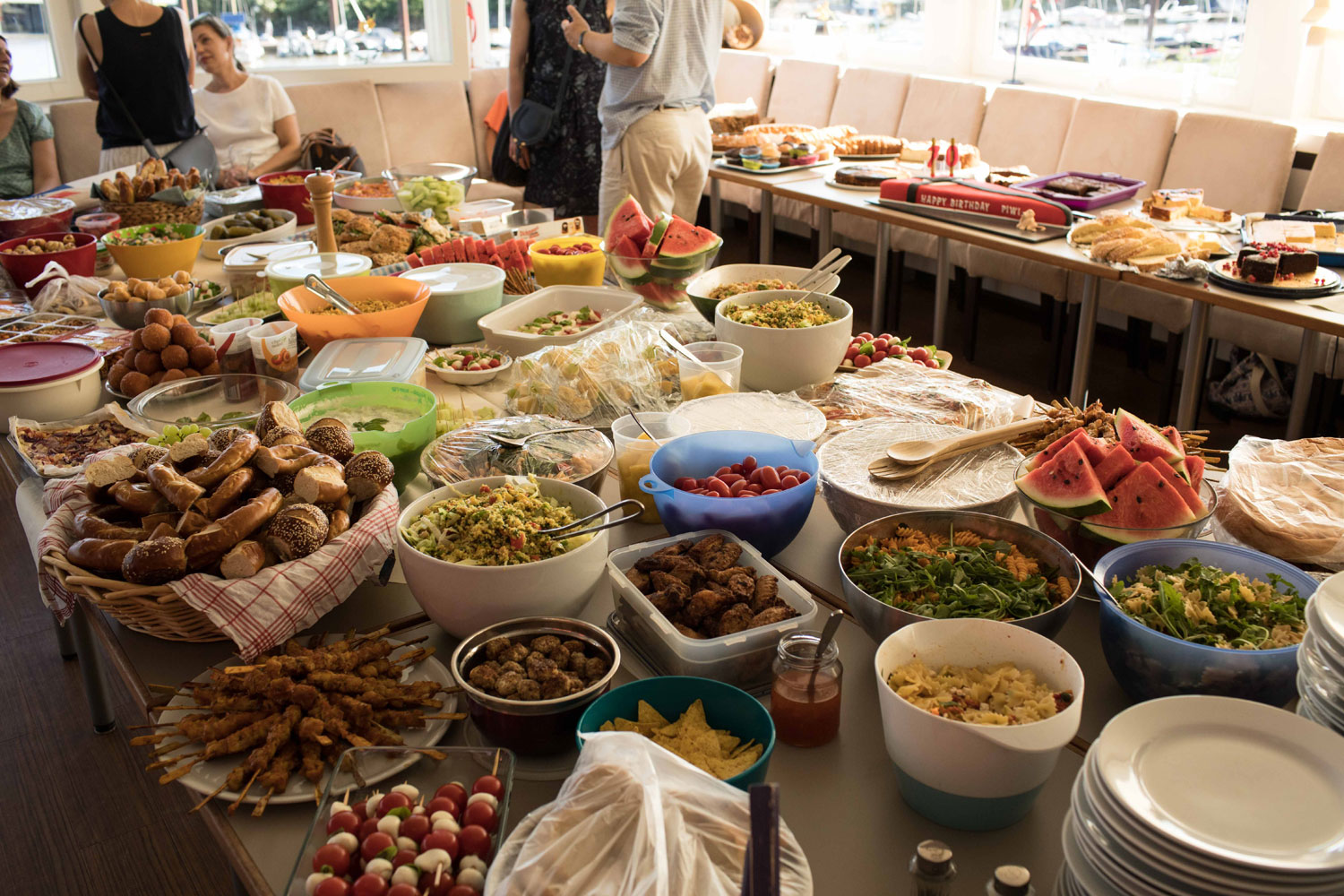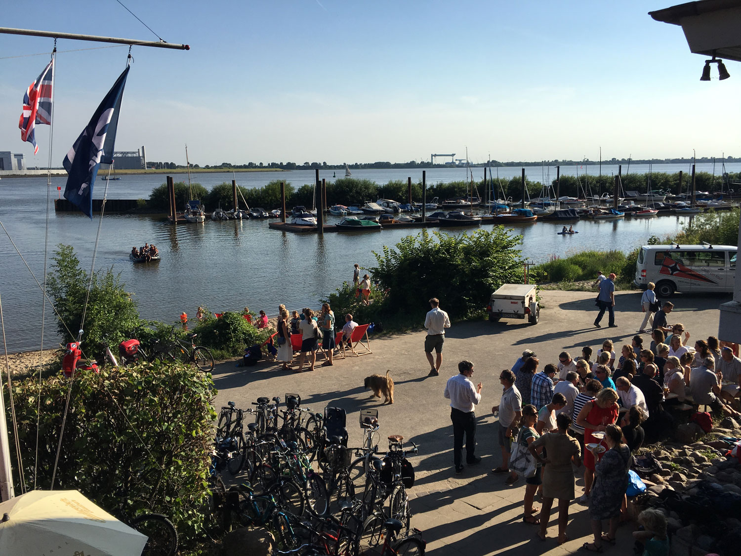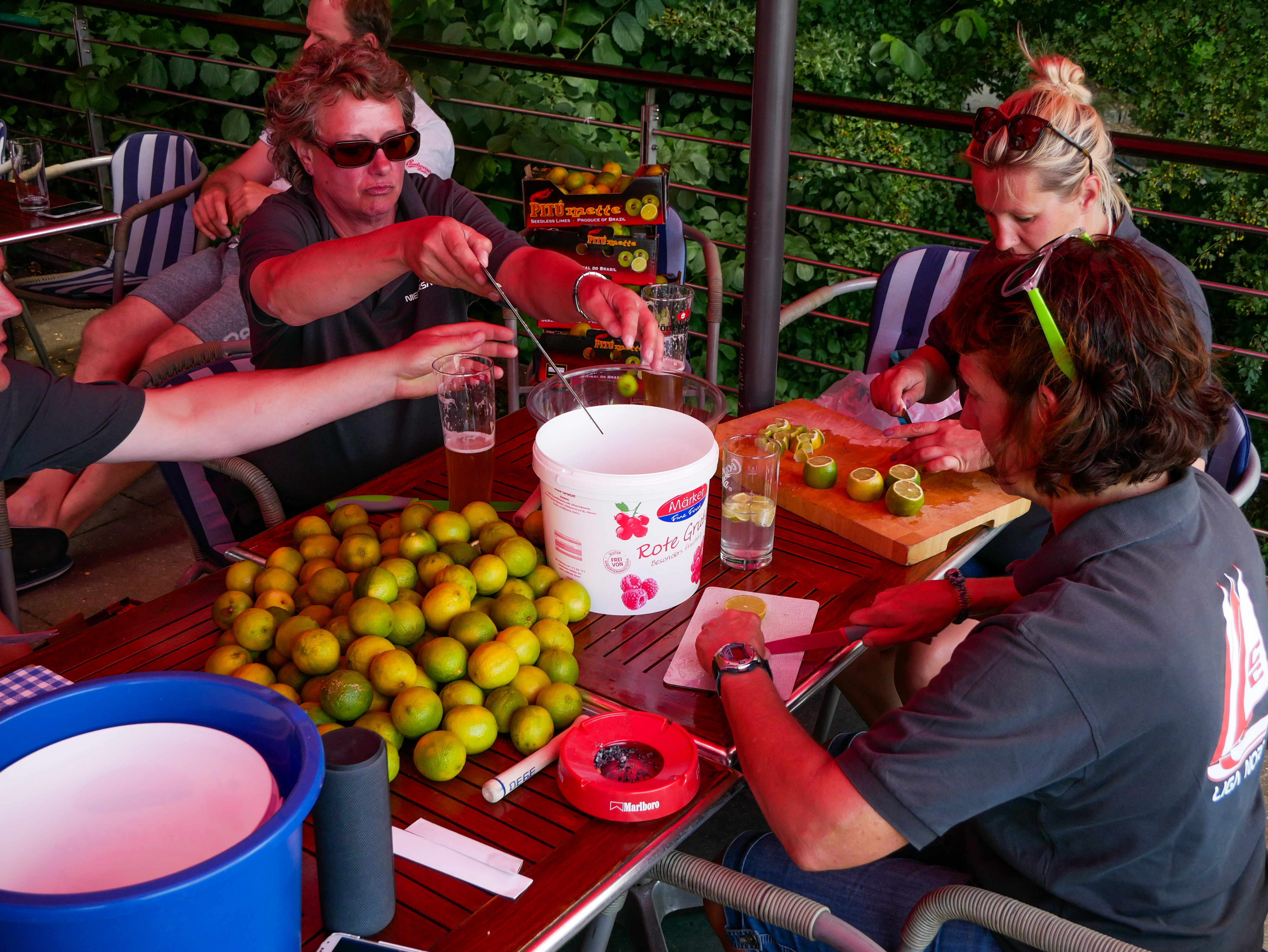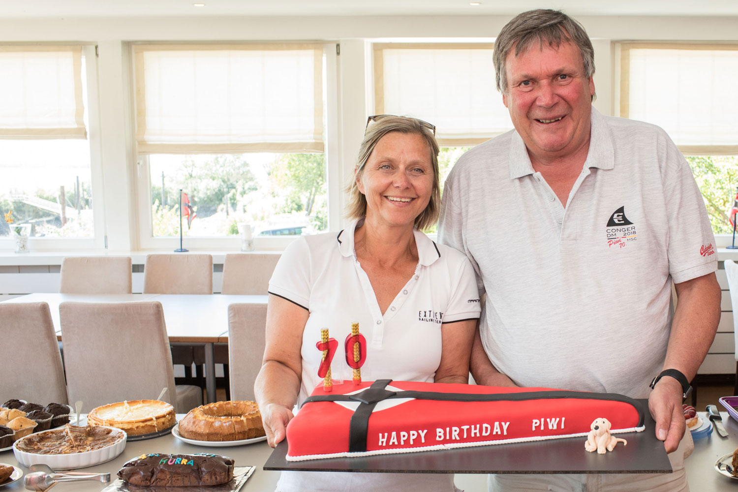 3. Tag Leider kein Wind! Wir hatten trotzdem genug zu tun Piwi`s Geburtstag zu feiern. Morgens waren alle Teilnehmer bei Kaffee und Bier mit ihren Booten am geschmückten Ponton. Nachmittags ging es mit einem Kuchenbuffet weiter. Dazu kam die gesamte MSC Optiabteilung mit ihrem traditionellem „Sommerferienanfangsgrillen“. Die Kinder vergnügten sich auf dem Wasser mit Banane- und Ringfahren, die Eltern klönten an Land. Ausserdem ermöglichten sie uns  ein Megasuperbuffet, für circa 300 Personen! Am Abend wurden unsere 3 Optieuropameisterschaftsteilnehmer und Alex Goltz als Trainer geehrt. Der „Clown“ Frank Schönfeldt rundete diese Superfeier mit seinen legendären Segelliedern ab. Tausend Dank, diesen Tag werden wir lange nicht vergessen!