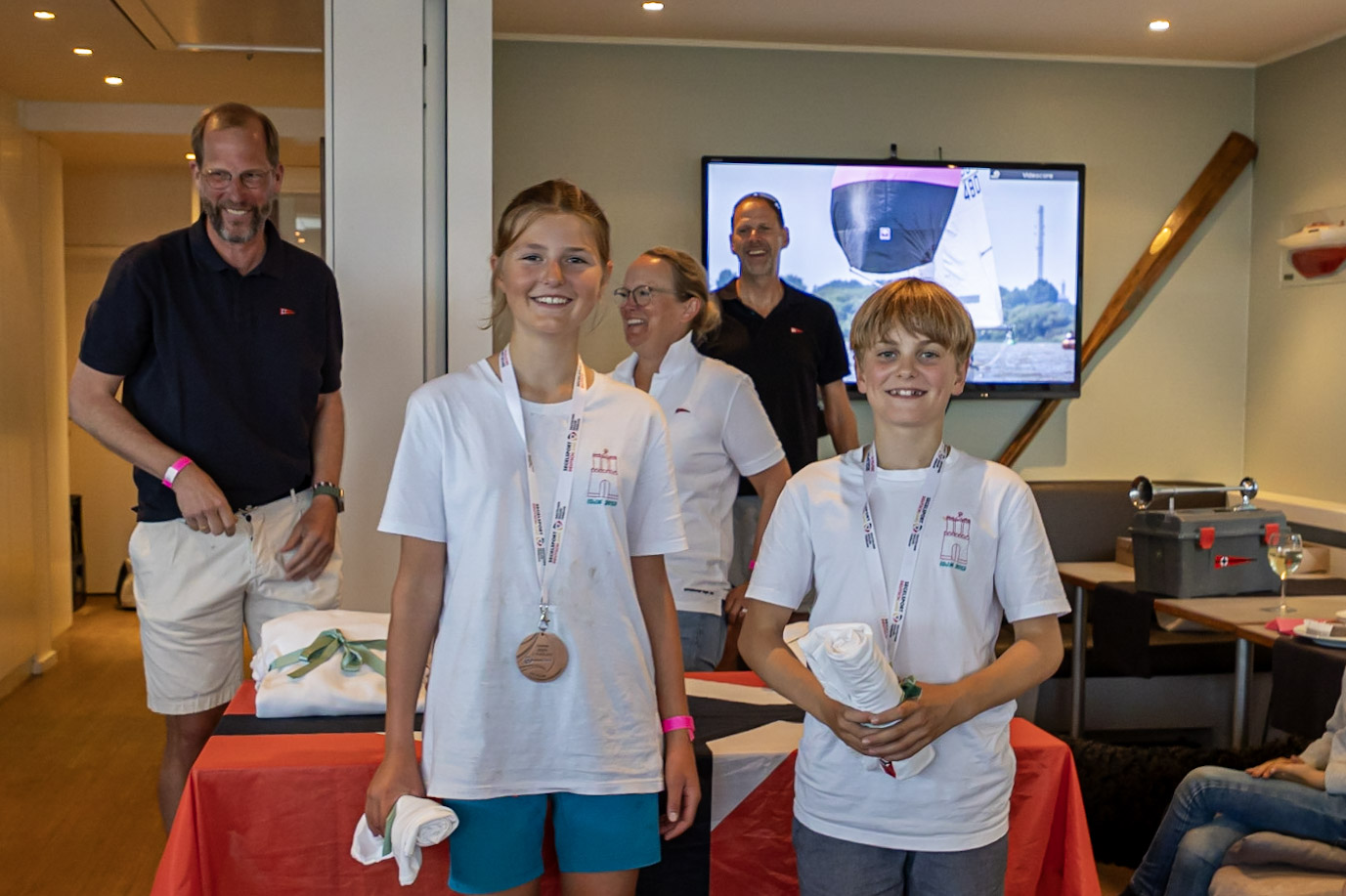 Die Goldmedaillen der U-17 Weltmeisterschaft Frauen im 420er waren der nächste Blickfang der Ehrungen. Esther Rodenhausen und Luisa Becker haben diese bei der WM in Alicante gewonnen, nach der Vize Europameisterschaftstitel JEM in Polen.