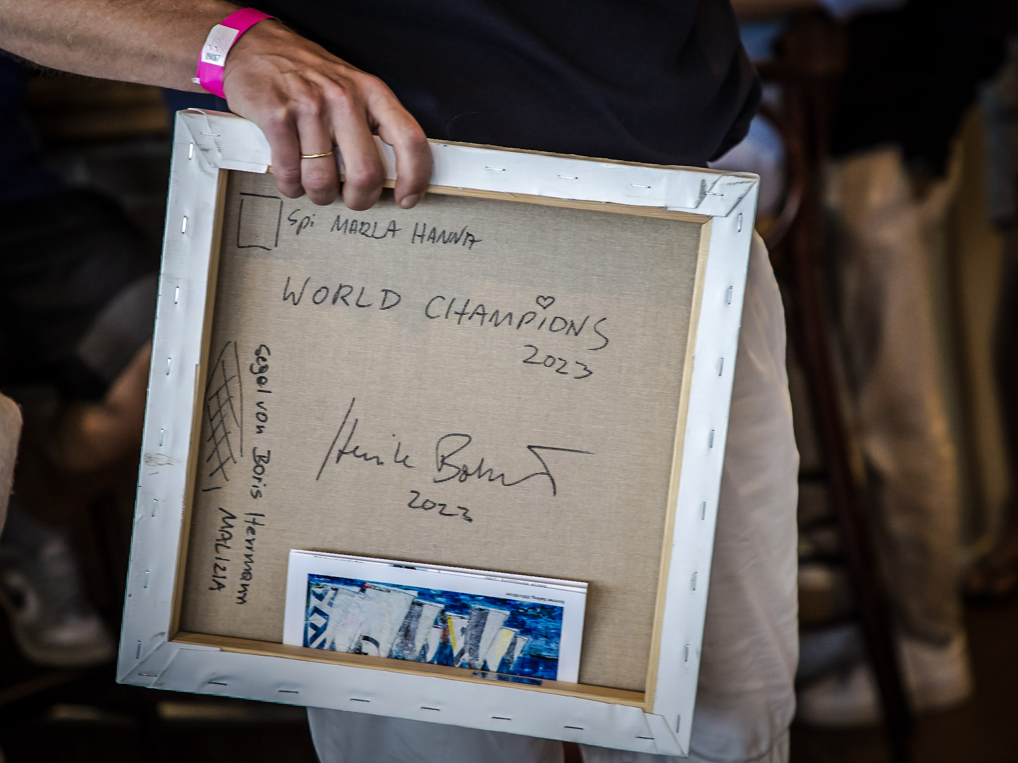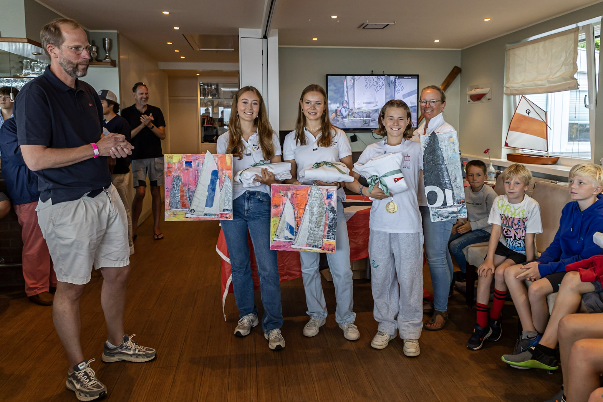 Neben den Preisen des Vorstands wurden noch besondere Bilder der Galerie Heinke Böhnert verliehen. In dies ist auch ein Segel von Marla und Hanna, unserem 49 FX Team, verarbeitet worden. Vielen Dank für die Unterstützung!