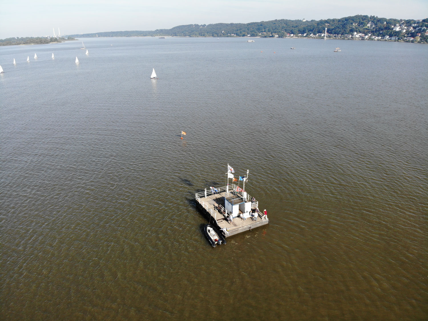 Das Team um Piwi legte schnell die Tonnen aus, so dass bei dann konstanten Bedingungen die ersten drei Wettfahrten bei schönstem Wetter gesegelt werden konnten.