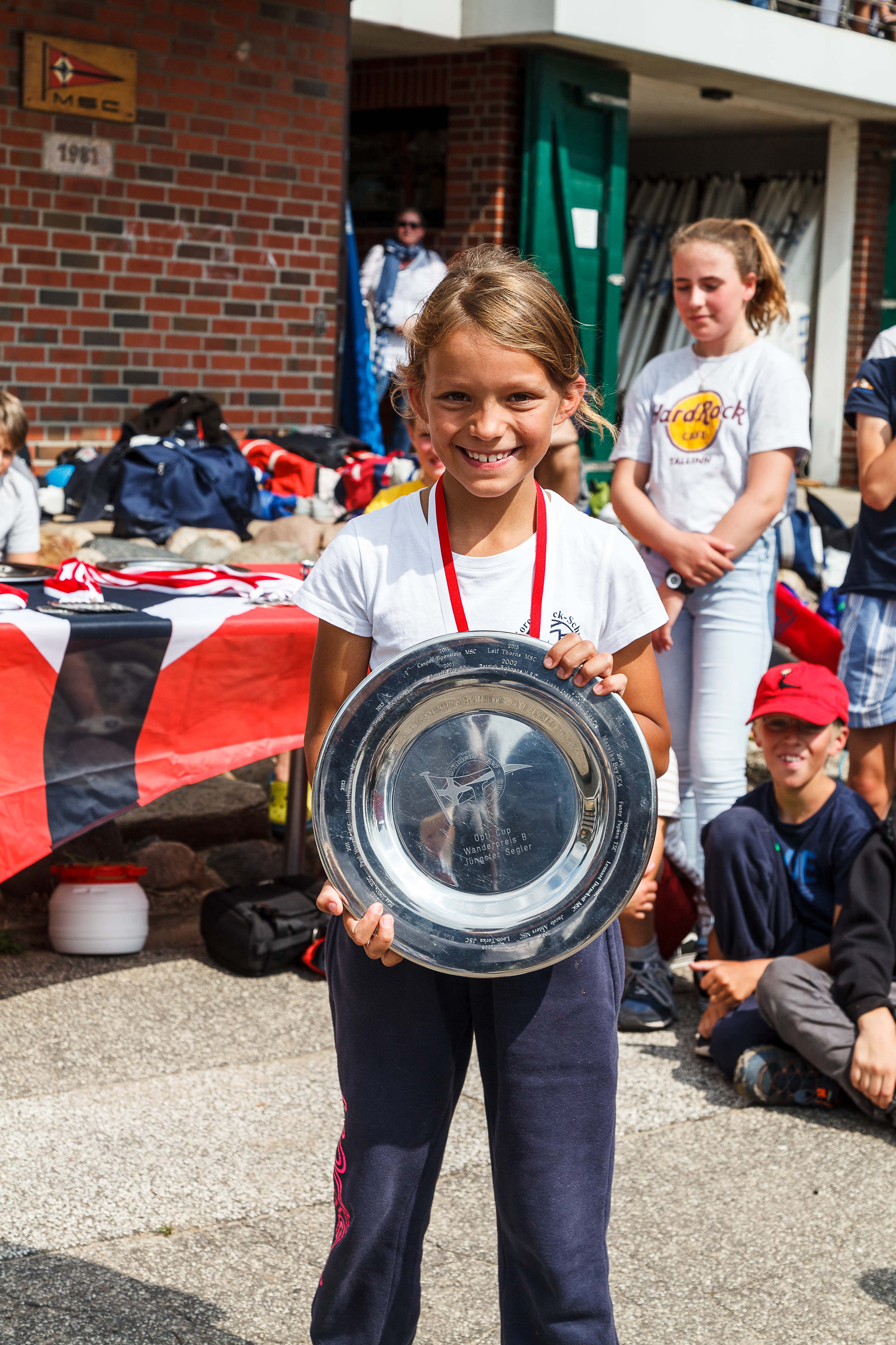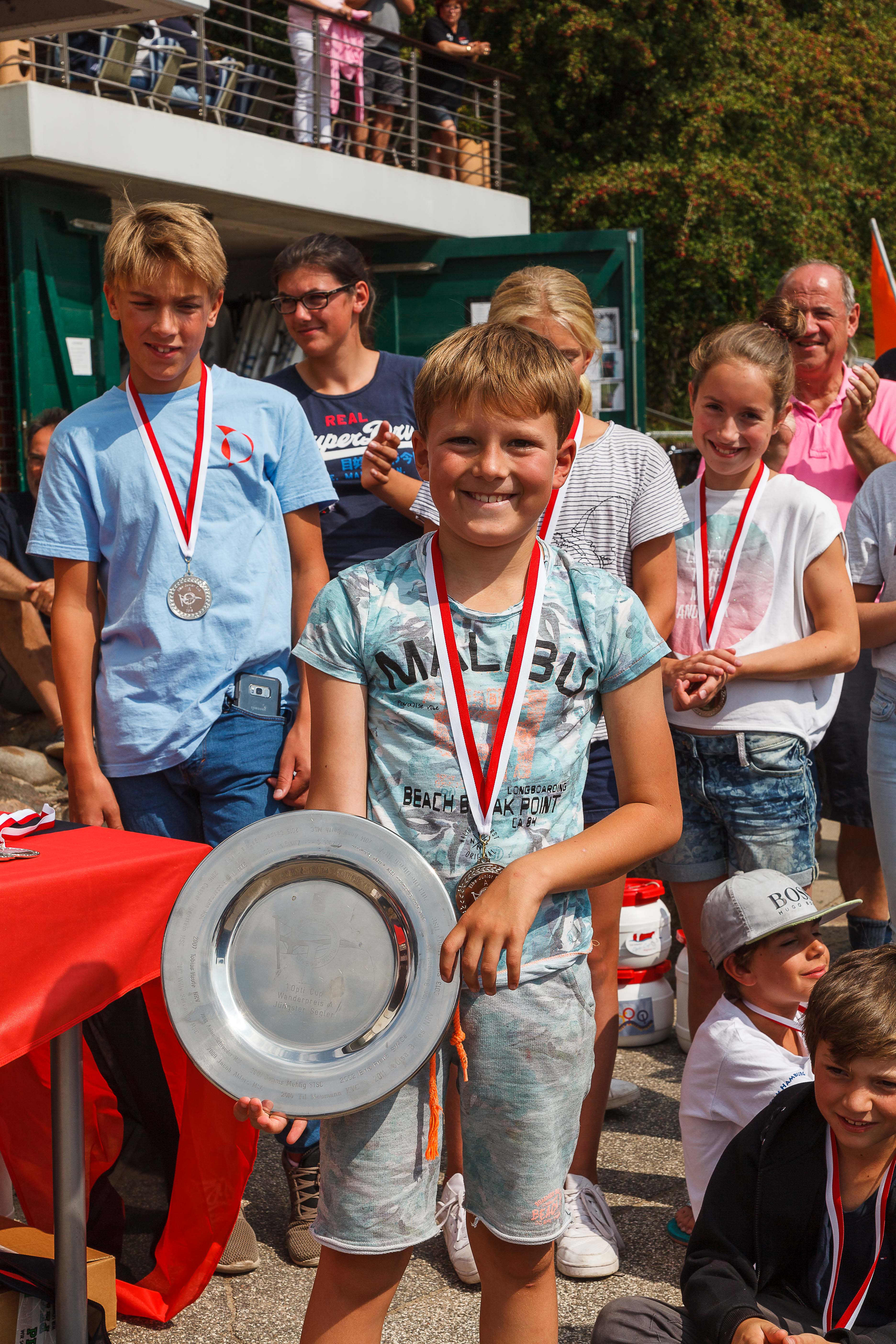 Traditionell wurden auch die Jüngstem in den jeweiligen Feldern ausgezeichnet. Die Wanderpreise gingen an Theda und Rasi, der in seiner ersten A-Regatte gleich eine Trophäe mit nach Hause nehmen konnte. Glückwunsch an alle.