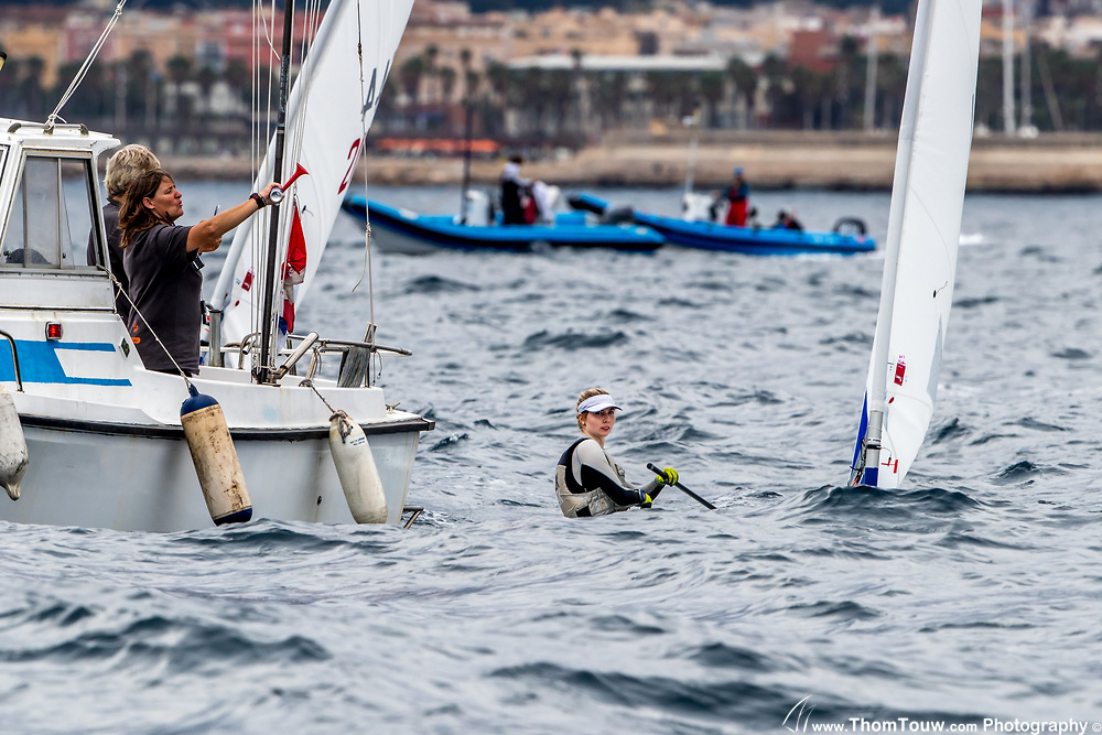 Am nächsten Tag ging es denn endlich los. Normalerweise segeln wir zwei Rennen pro Tag, da wir aber durch den Streiktag in Verzug waren, waren für diesen Tag drei Rennen angesetzt. Bei eher leichteren Winden schafften wir nur zwei Rennen, für ein drittes reichte der Wind nicht. Da wir 90 Teilnehmerinnen waren, wurden wir in zwei Gruppen eingeteilt. Für mich startete die Regatta hervorragend. Ich konnte das erste Rennen gewinnen, ließ damit sogar einige Olympiateilnehmer hinter mir. Die darauffolgenden Wettfahrten verliefen dagegen eher enttäuschend. Am zweiten Tag hatten wir deutlich mehr Wind, was leider nach wie vor nicht zu meinen Stärken gehört. Nach fünf Qualirennen verpasste ich das Goldfleet knapp und hatte somit in den letzten drei Tagen keine Möglichkeiten, mich noch weiter nach vorne zu segeln. Ziemlich enttäuscht startete ich dann in die ersten Rennen im Silberfleet. Dort schaffte ich dann immerhin einige gute Einzelplatzierungen und konnte auch das letzte Rennen nochmal gewinnen. Insgesamt reichte es nur für einen 52. Platz.