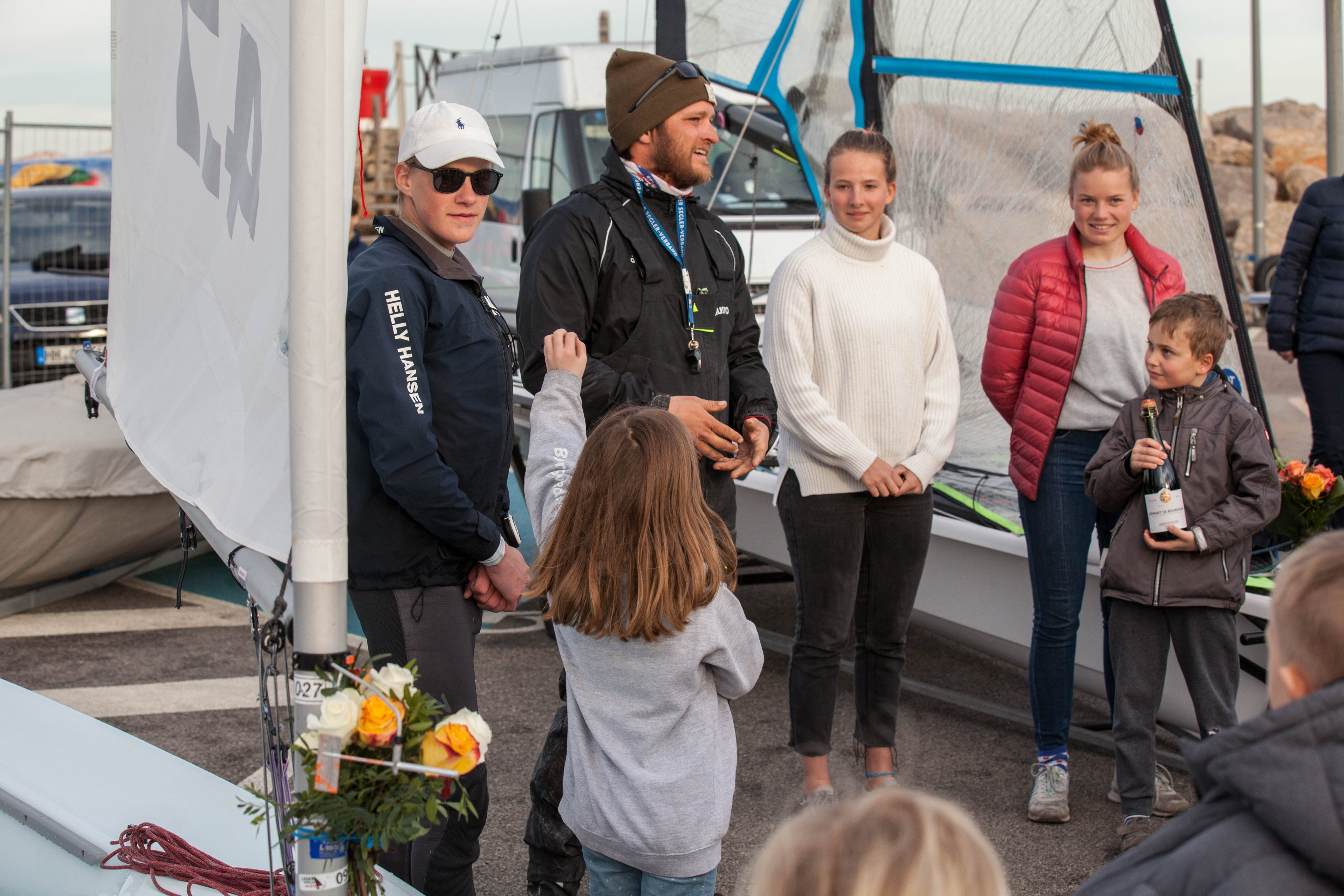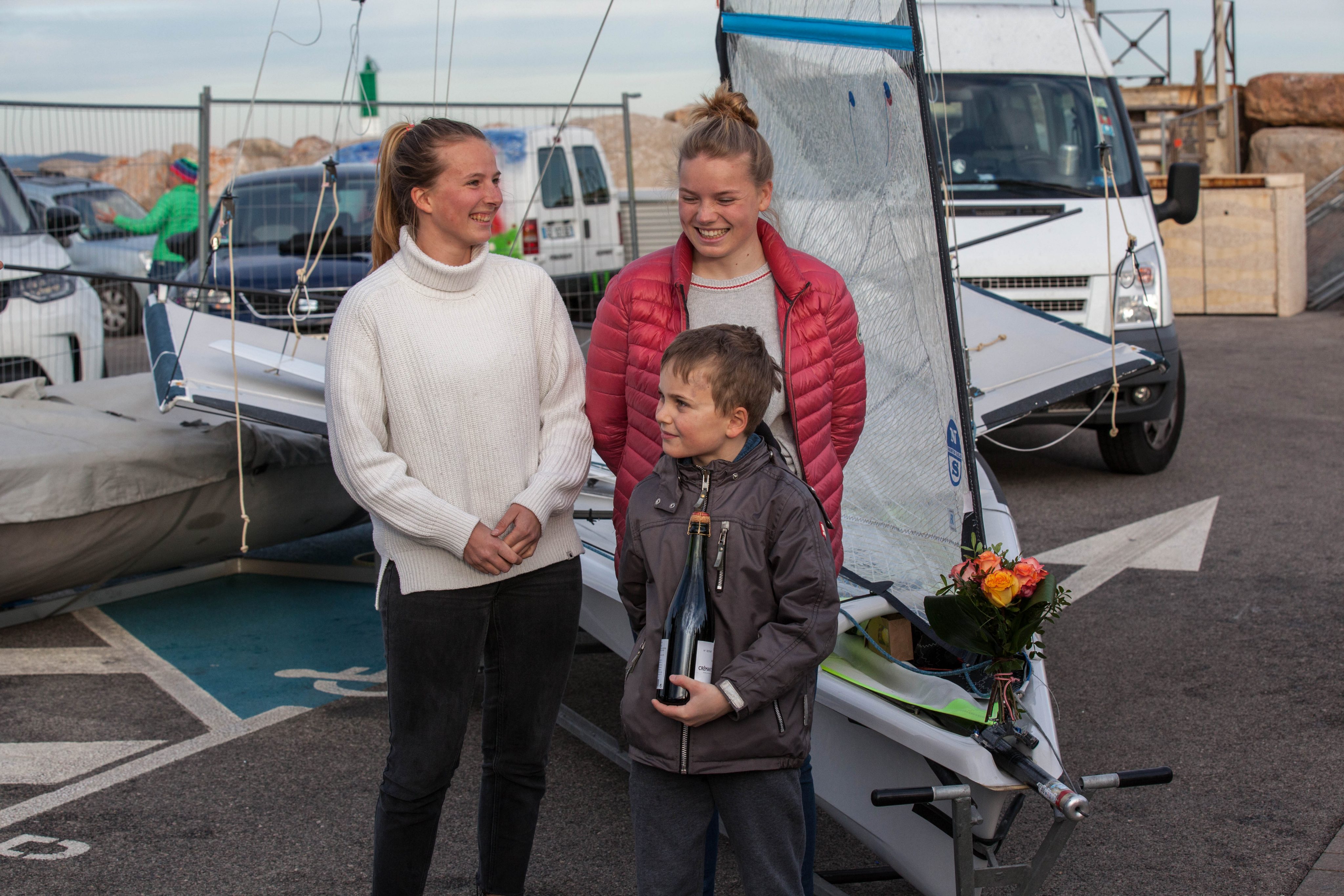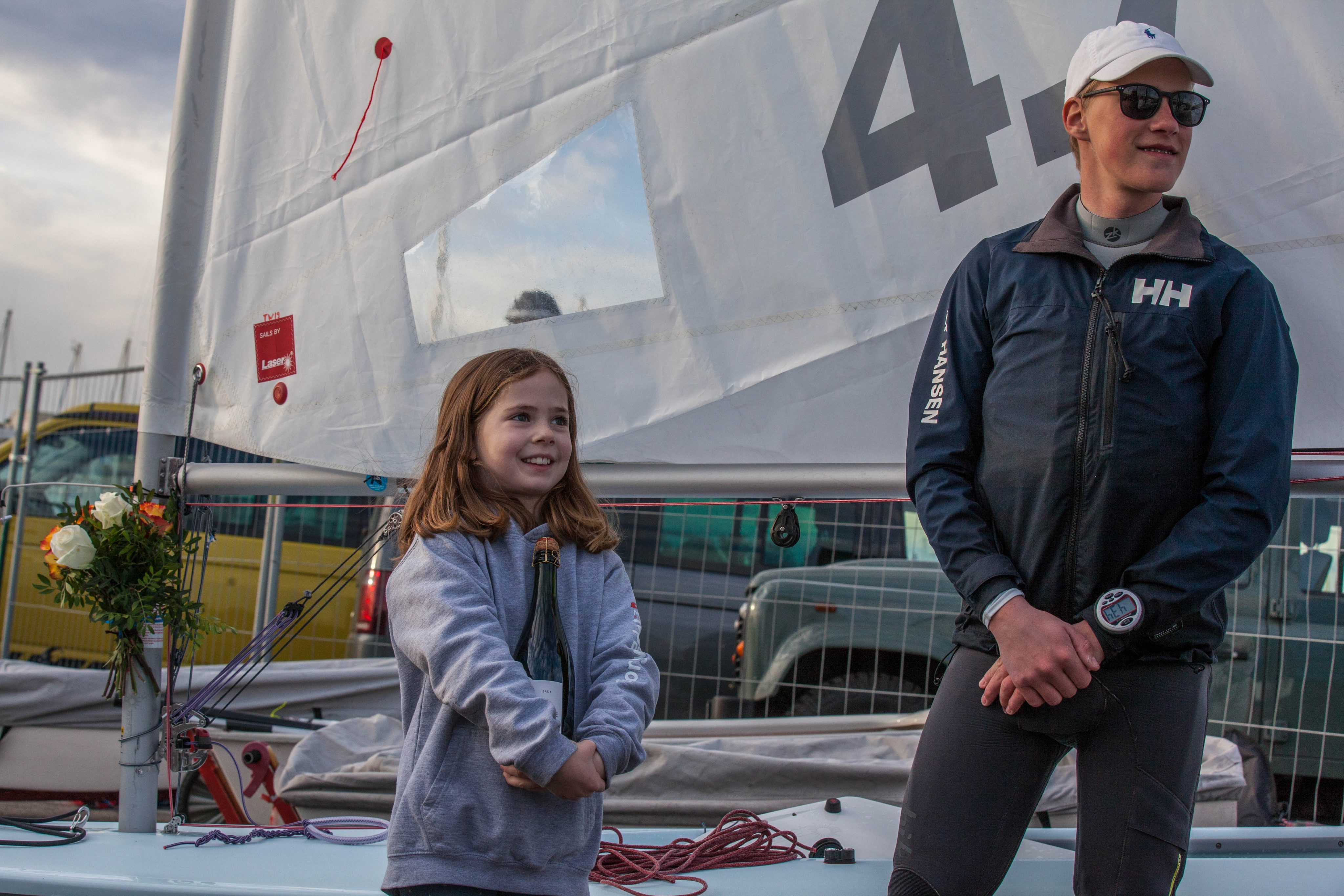 Zwei Bootstaufen gab es am Mittwoch abend: Hannah und Marla nennen ihren neuen 49erFX in Zukunft „Paul“, Kajus findet seinen Laser „Supreme“.