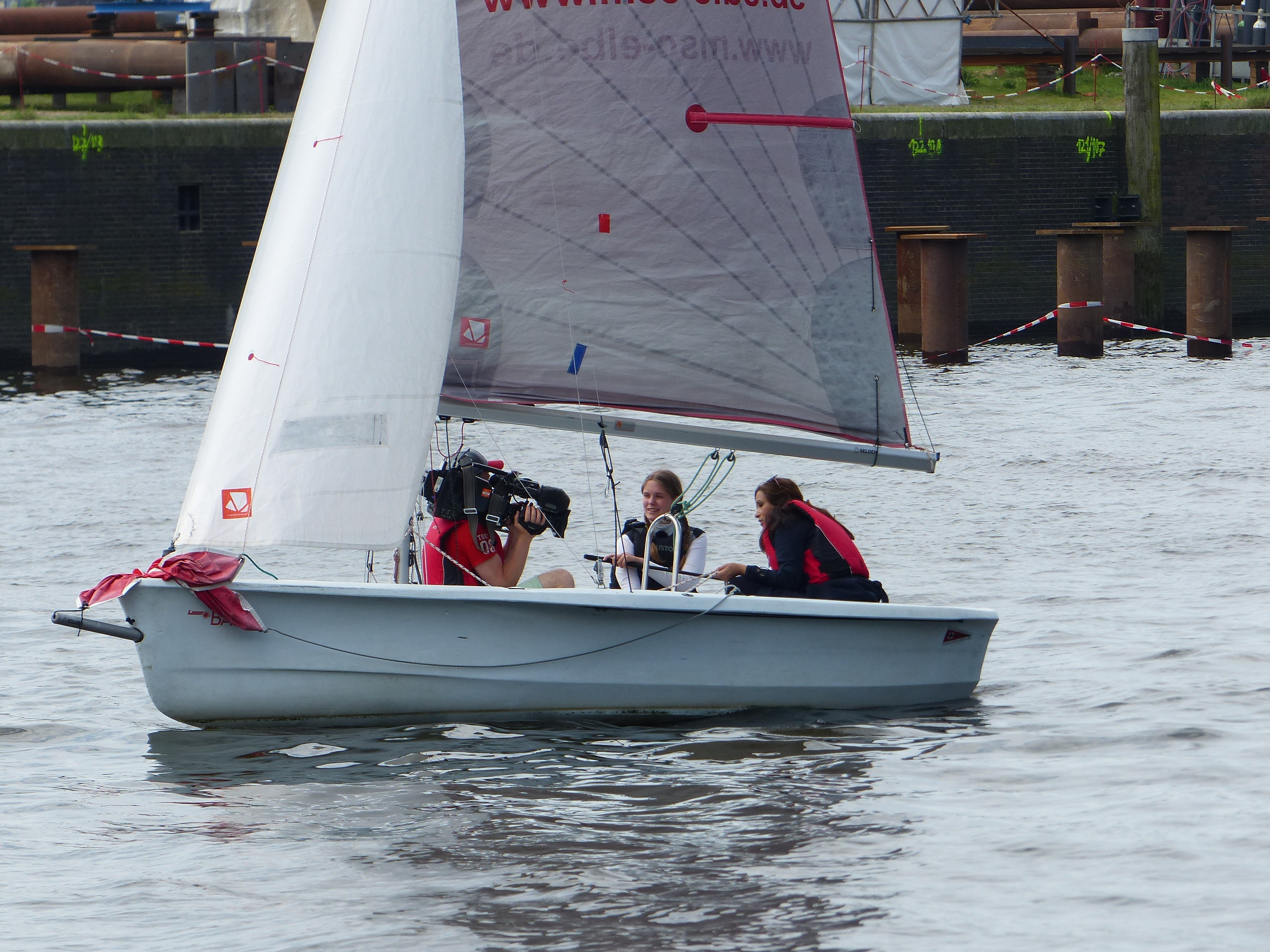 Donnerstag und Freitag nutzen die Besucher des Hafengeburtstages die Gelegenheit zum Schnuppersegeln, in diesem Jahr erstmals auch für Erwachsene. Klein und Groß wurden wasserfest und untergehsicher eingekleidet (Danke dafür an Musto / Fa. Frisch) und von Kindern und Jugendlichen auf Optis und Laser Bahias „spazieren gesegelt“. Wer wollte, durfte auch selbst mal Pinne und Schot bedienen. Die Besucher genossen sichtlich die Zeit auf dem Wasser und kamen mit strahlenden Augen an Land. Auch Fernsehteams wollten sich dies nicht entgehen lassen und stiegen mit kompletter Belegschaft an Bord.