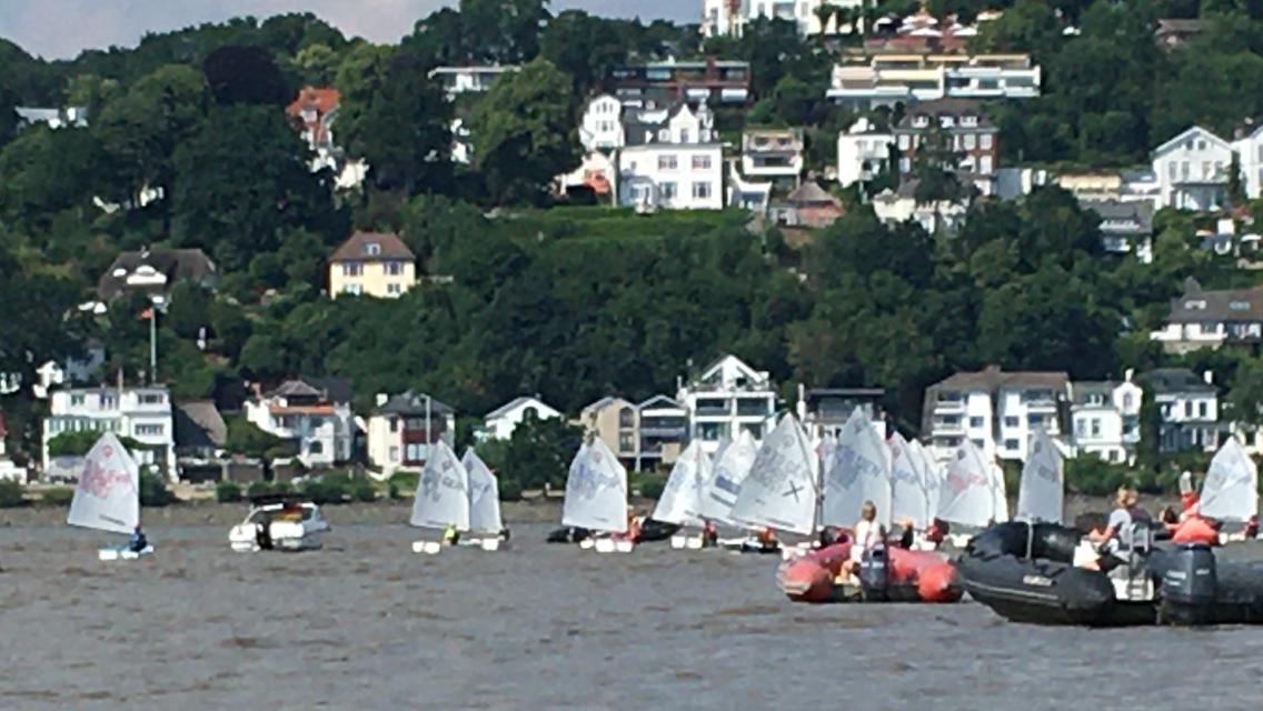 Die Gruppe von Netti und Juliane, Dani mit Leonie und Nicola machten sich um 12 Uhr dick mit Sonnencreme eingeschmiert auf den großen Weg Richtung Neuenschleuse. Von Anfang an wurde gesegelt. Die Elbe zeigte sich von ihrer besten Seite. Wir machten uns mit ablaufendem Wasser auf den Weg- drei Stunden vor Niedrigwasser gab es kaum große Containerschiffe mehr, die passieren wollten. Die Elbe und das Fahrwasser gehörte uns. Dank guter Winde und Strömung waren wir relativ schnell- eigentlich sogar viel zu schnell an der Einmündung in das Este Fahrwassers. Das Wasser lief stark ab und der eine oder andere Segler hatte kurze Begegnungen mit der Sandbank. Dank eines blitzartigen Schleppaufbaus und der tollen Reaktion aller jungen Segler kamen wir durch die Fahrwasserengen und konnten endlich abbiegen. Das war schon mal geschafft.