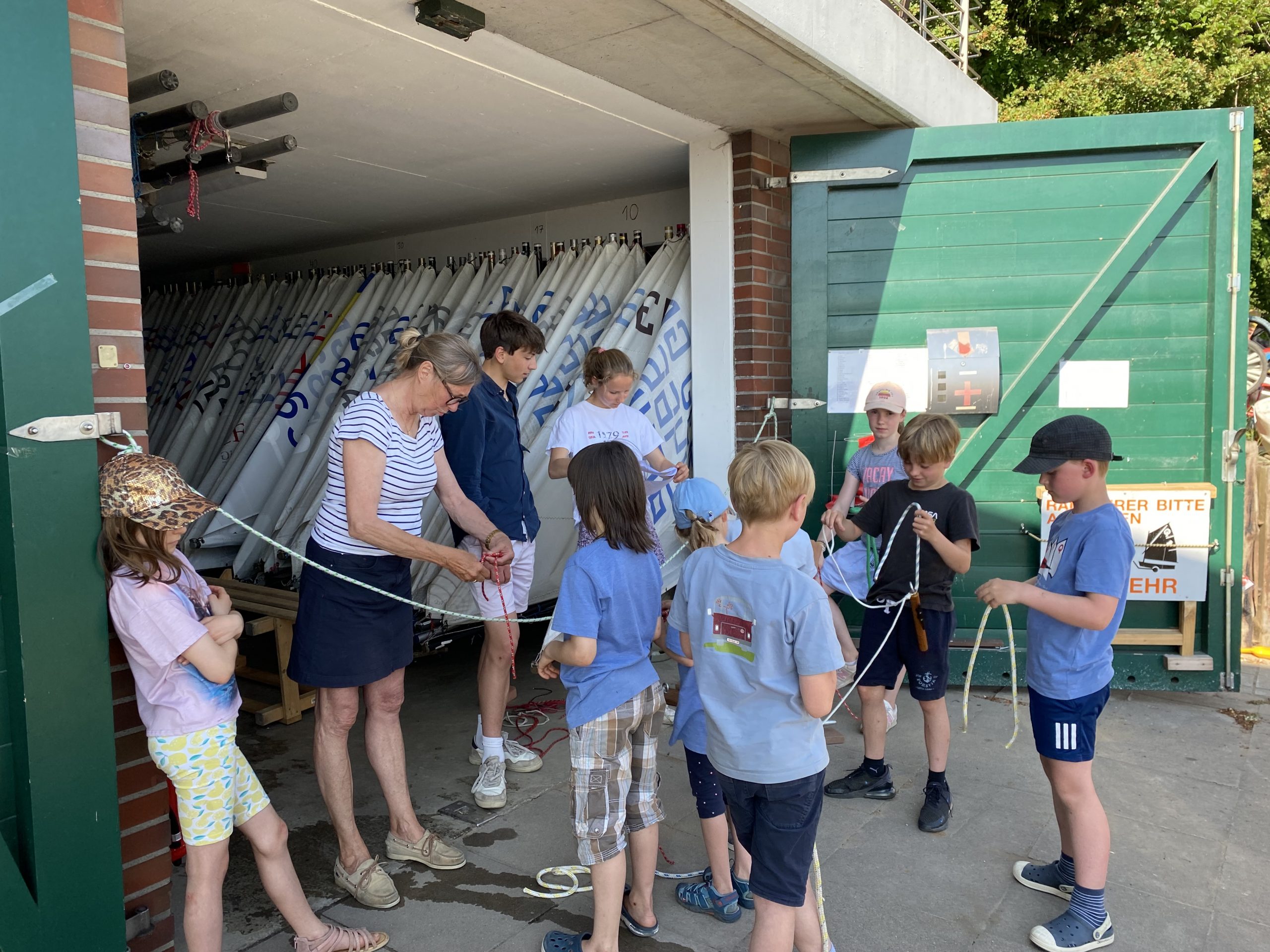Wie bereits im letzten Jahr wurde die Praxis-Prüfung auf dem Wasser bereits in Borgwedel und teilweise im Wochentraining abgenommen, sodass am Montag „nur“ noch die Theorie- und Knoten-Prüfung anstanden, die die Kinder mit Bravour meisterten. Mit mehreren Prüflingen, die nur knapp an der vollen Punktzahl vorbeischrammten und einigen, die diese sogar erreichten, konnten unsere Anfängerkinder aus 2022 rekordverdächtige Prüfungsergebnisse erzielen und beweisen, dass sie eigentlich schon gar keine Anfängerkinder mehr sind.