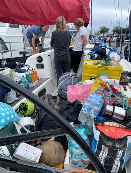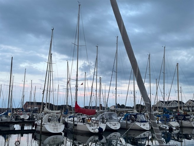 Am 26.7.2024 übernahmen wir, Birgitt, Nicki, Tini und Olli, von Obi die Dockenhuden in Aahus, an der Ostküste Jütsland. Nachdem wir unsere Sachen und Vorräte verstaut hatten gingen wir zum Abendessen in einem lokalen Fischrestaurant. Nach anschließendem kurzem Stadtbummel bereiteten wir uns auf das Segeln am nächsten Tag vor.
