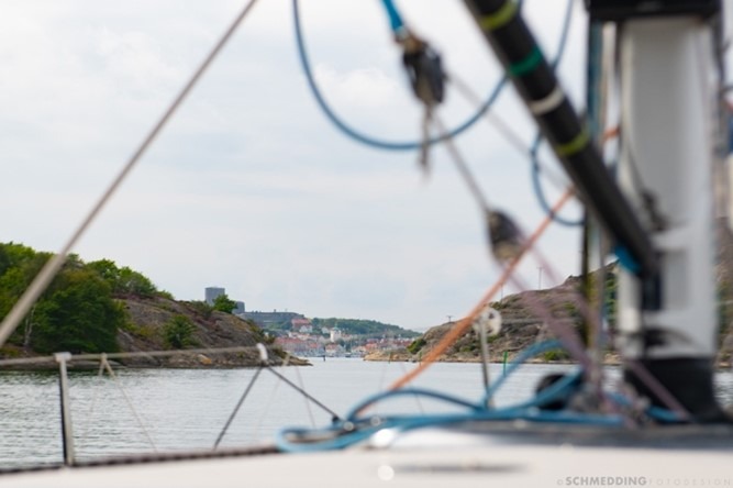 Unsere Ziele waren die Schären in Schweden. Also beschlossen wir früh aufzustehen und loszusegeln. Mit mäßigem Wind und Sonnenschein ging es unter vollen Segeln weiter 61 Seemeilen nach Donsö. Da für den kommenden Tag 28 Knoten Wind angesagt waren, blieben wir einen Tag im Hafen und erkundeten die Insel vor Göteburg.