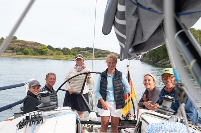 Unser Ziel war Marstrand, eine charmante Insel, die für ihre historische Festung bekannt ist. Der Segeltag war atemberaubend, mit einer mäßigen Brise, ging es zuerst den Göta-Kanal entlang und dann durch die schwedischen Schären. Die unzähligen kleinen Inseln und Felsen waren ein Paradies für Naturliebhaber. Am Nachmittag schlief der Wind ein und wir legten eine Bade- und Kaffeepause ein. Danach ging es unter Motor weiter. In Marstrand angekommen, erkundeten wir die alten Straßen und genossen den Blick auf die Festung. Hier hieß es Abschied nehmen für Tini und ihre Tochter.