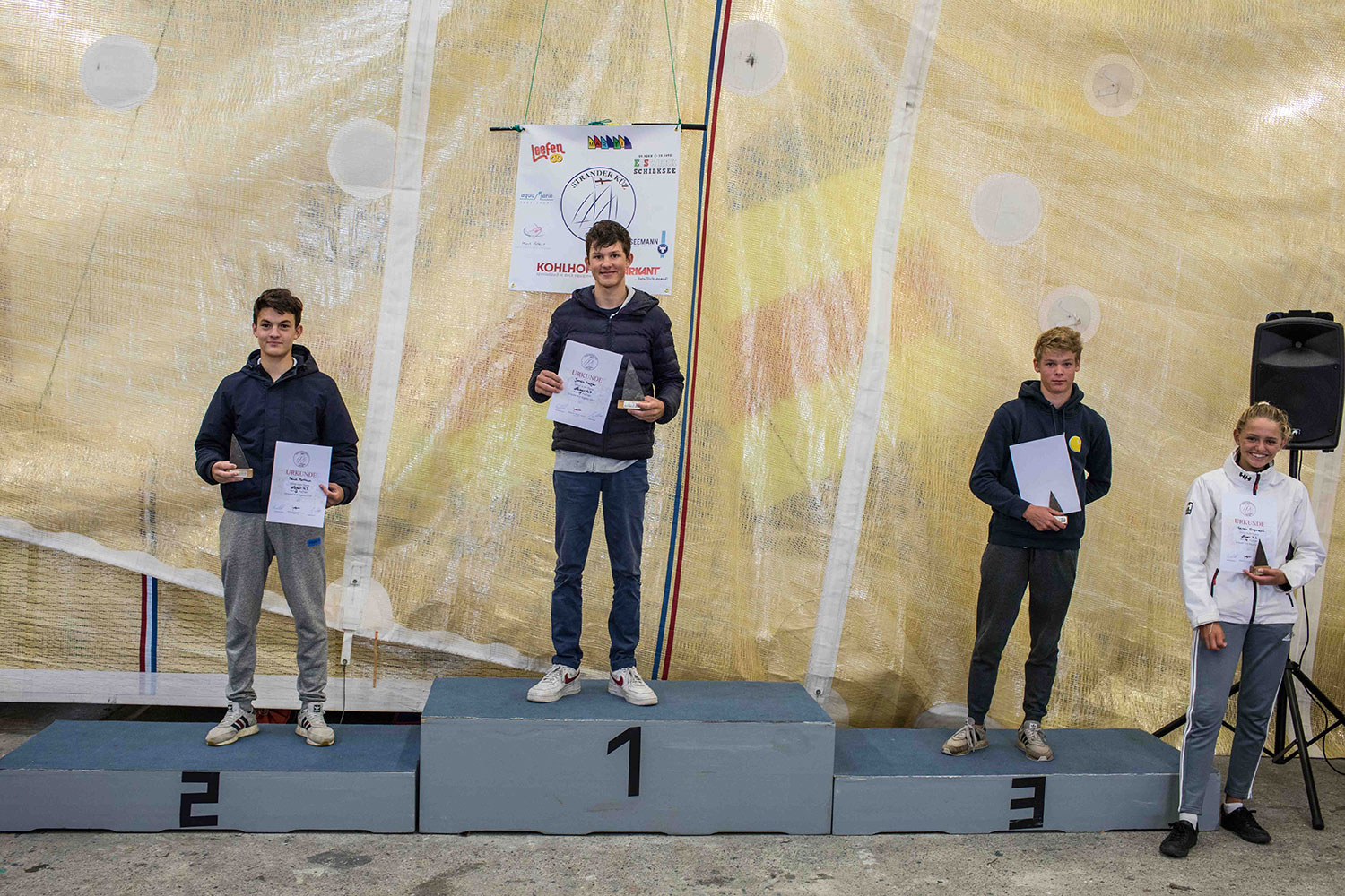 Am längsten mussten die Opti-Segler/-innen bei der gut besuchten Siegerehrung warten. Die Tombola kam ganz zum Schluss. Vom MSC waren vier Segler in der Kategorie Opti B an den Start gegangen: Tristen kam auf Platz 6, gefolgt von Franz (14) und Philip (23) sowie Jasper (46). Bei den Opti A segelte Esther auf Platz 5. Theo kam auf Rang 8 gefolgt von Jonathan (18), Svea (19), Till (22) und Rasmus (36). Beim Laser Standard kam Lutz auf Platz 3. Bei Laser Radial segelte Jasper auf Platz 16.