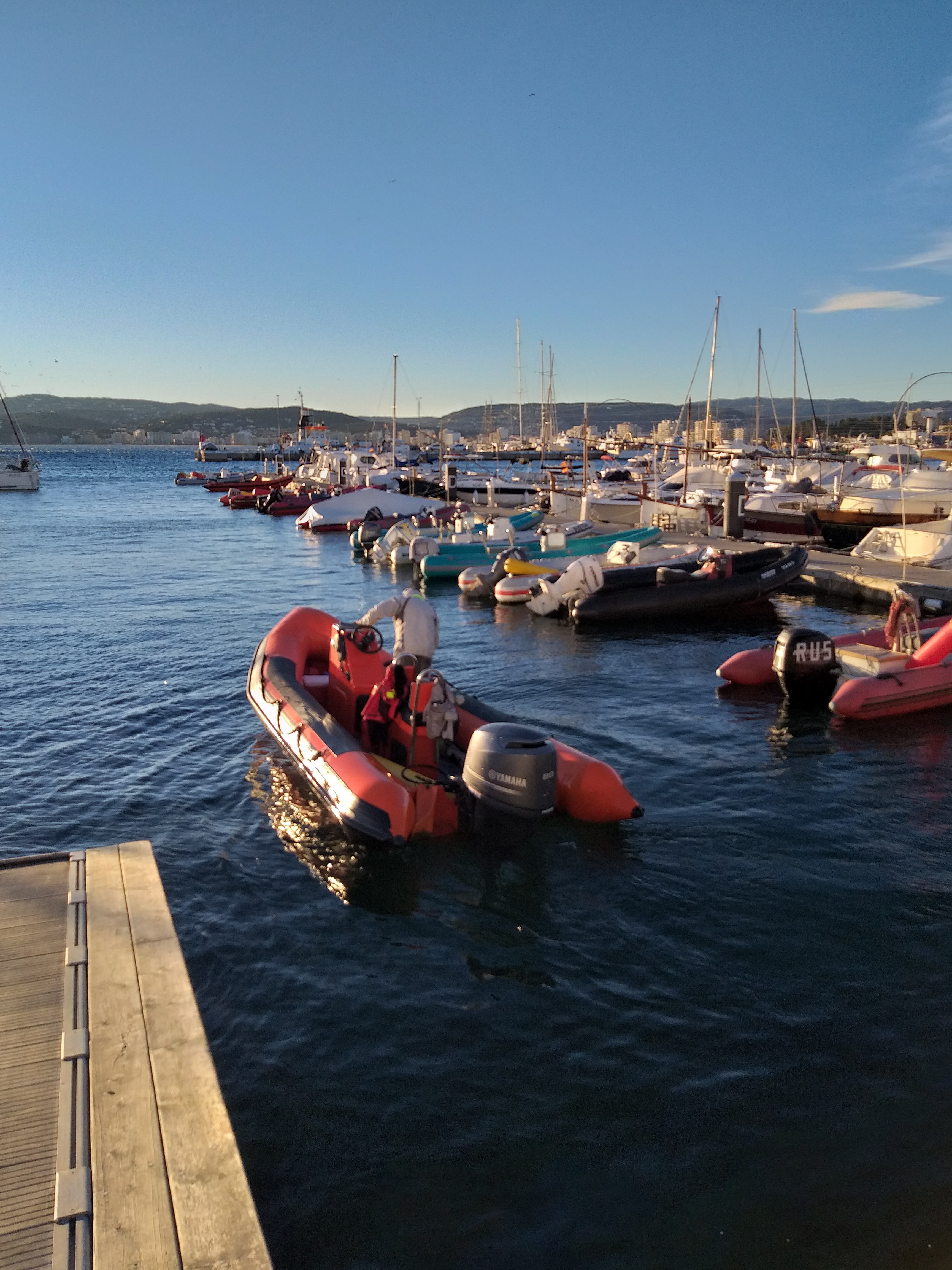 Die Gruppe wohnt in einem etwas abseits gelegenen Stadtteil an einer schönen Bucht in einem herrschaftlichen Haus mit einem phänomenalen Blick aufs Meer. Palamos ist übrigens für seinen Fischfang berühmt. Werktags gibt es am späten Nachmittag eine Auktion, wo man den frischesten Fisch und Meeresfrüchte erwerben kann. Davon profitieren auch die Segler. Jeden zweiten Tag kommt Fisch auf den Speiseplan.