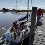Im Seglerhafen der Hallig Hooge kreuzten sich am 21.08. 2018 die Kurse von „Döntje„ (Klaas Schlenkermann und Crew) und von „Fliegender Stern“ (Klaus Lange und Ulrike Gebauer), siehe Foto.
