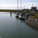 Der kleine Seglersteg gleich hinter der „Schleuse“ bot Versorgung, Landgang und naturnahe Aufenthaltsqualitäten für die beiden unterschiedlichen Boote: Für den „großen Jollenkreuzer“ mit Innenballast und für den Halbtonner der Einheitsklasse Ballad. Der Jollenkreuzer hob und senkte sich schlicht oder lag mit flachem Boden im Schlick – entsprechend dem Stand der Tide. Der „Fliegende Stern“ mußte extra mit Fenderbrett und Spinnakerfall an Land gegen Umfallen gesichert werden, weil der Kiel im Schlick steckte, aber harten Grund gefunden hatte.
