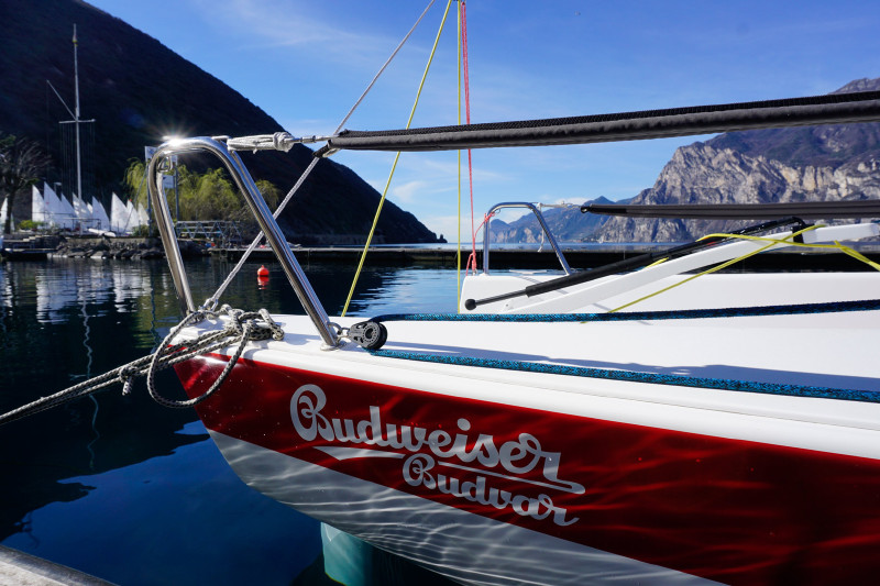 Die Sonne blieb uns auch den Rest der Woche hold, mittags wurden Spitzen von 25 Grad erreicht, Essen auf der Terrasse im Circolo Vela Torbole selbstverständlich. Auch der Wind gab weiter alles: von ordentlich Hack bis Flaute, der nur mit einer Schlauchboottour nach Riva ins Eiscafé Flora beizukommen war (göttlich!).