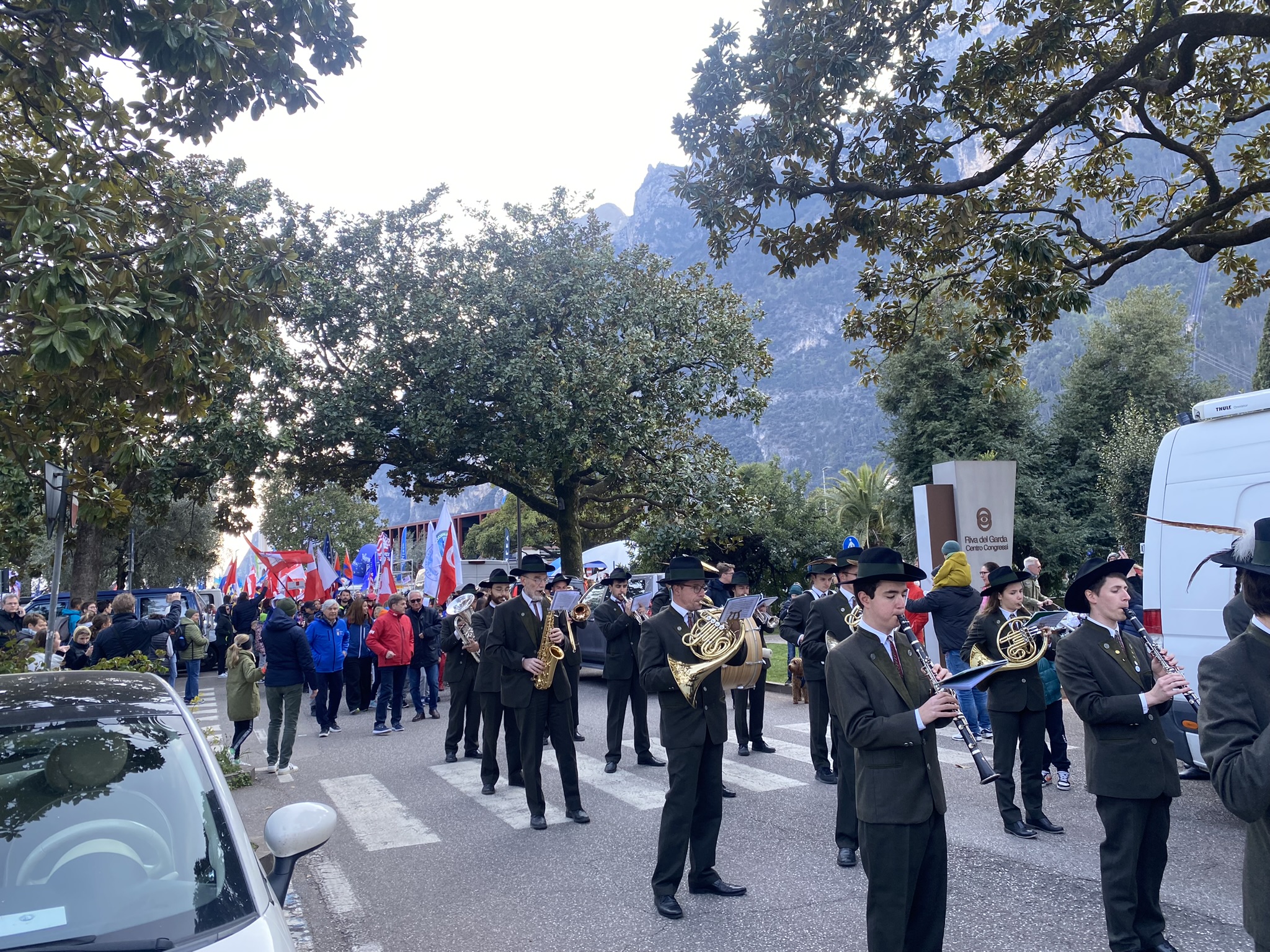 Vor dem Beginn der Wettfahrten am Gründonnerstag nahmen alle MSC-Seglerinnen und Segler zusammen mit Trainer Dennis an der großen Eröffnungsparade teil, die durch die schöne Altstadt von Riva führt. Jedes Team hatte seine Nationale, Landesflagge oder auch Vereinsstander dabei, so dass die über 1.000 Teilnehmerinnen und Teilnehmer mit vielen bunten Flaggen durch die Stadt zogen. Das MSC-Team schwenkte stolz die Hamburg-Flagge.