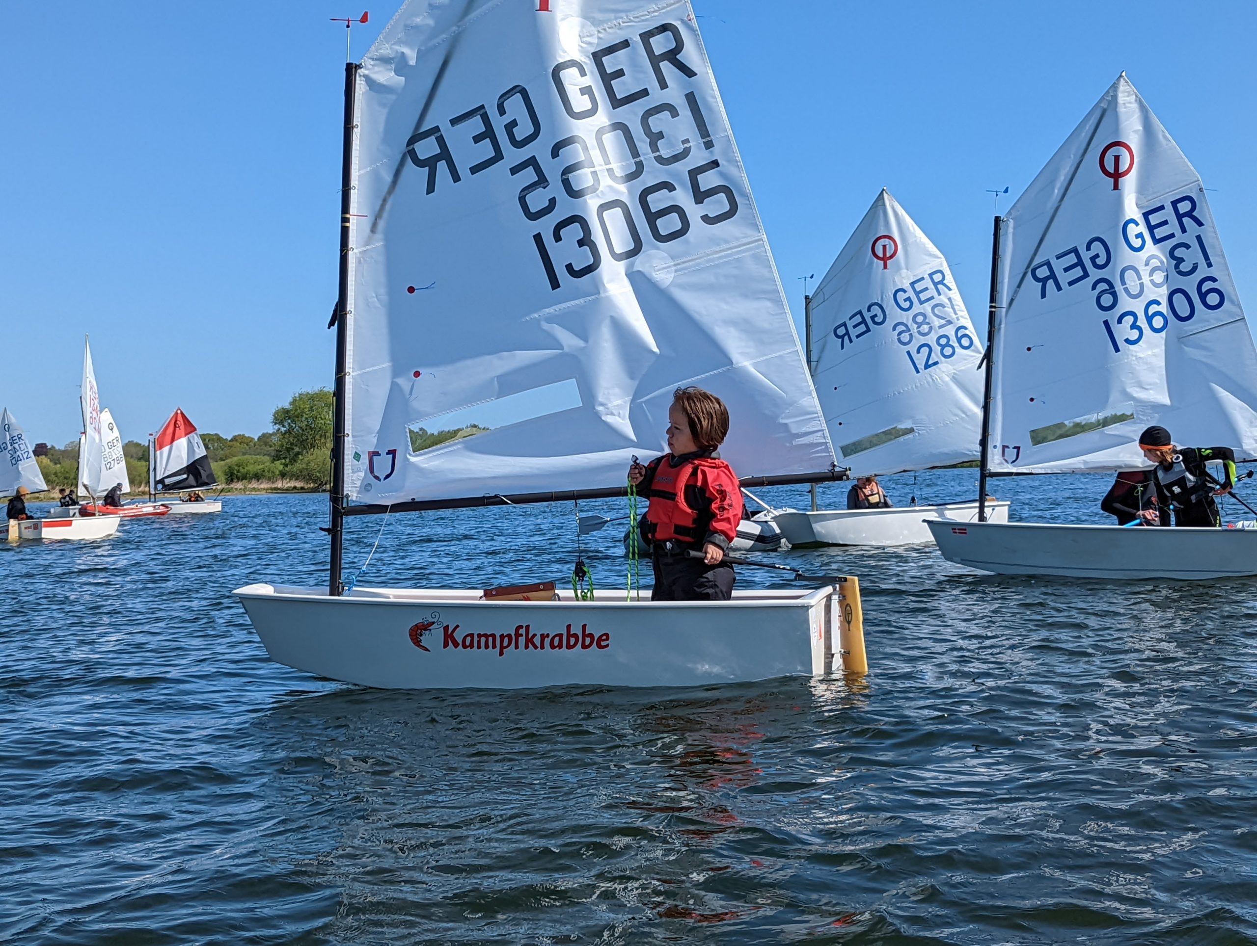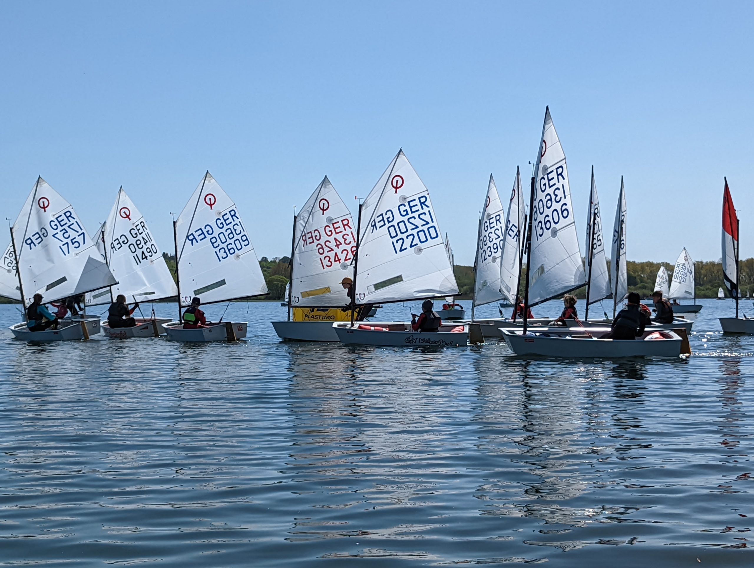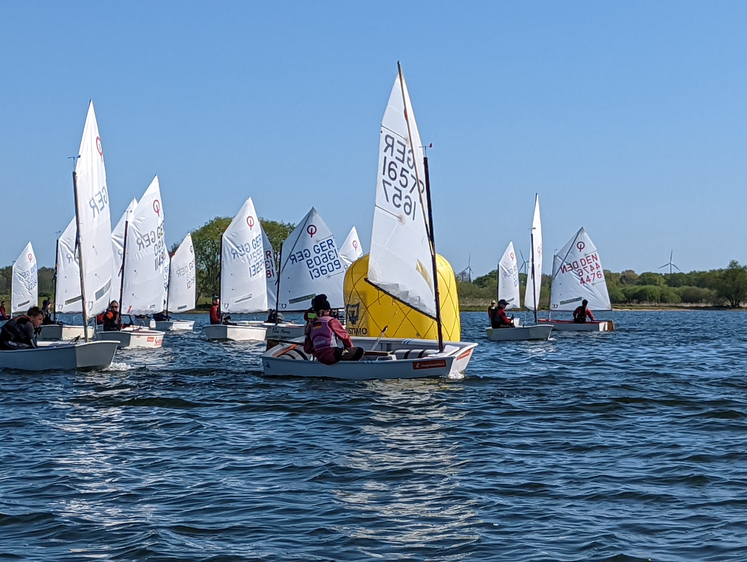 Am Wochenende 7./8.5. waren wir mit 8 Opti B und 4 Opti C Segler:innen des MSC am Lanker See beim diesjährigen „Preetzer Schusterjungen“ des Segelclub Preetz. Die erste Wettfahrt startete am Samstag um 13 Uhr bei sehr moderatem Wind. Zwei Wertungsfahrten für die Opti C und vier Wertungsfahrten für Opti B konnten trotzdem problemlos gesegelt werden. Trainerbetreuung auf dem Wasser war nicht möglich, dafür waren mehrere Eltern mit SUPs trotzdem ganz nah dran am Geschehen auf dem Wasser.