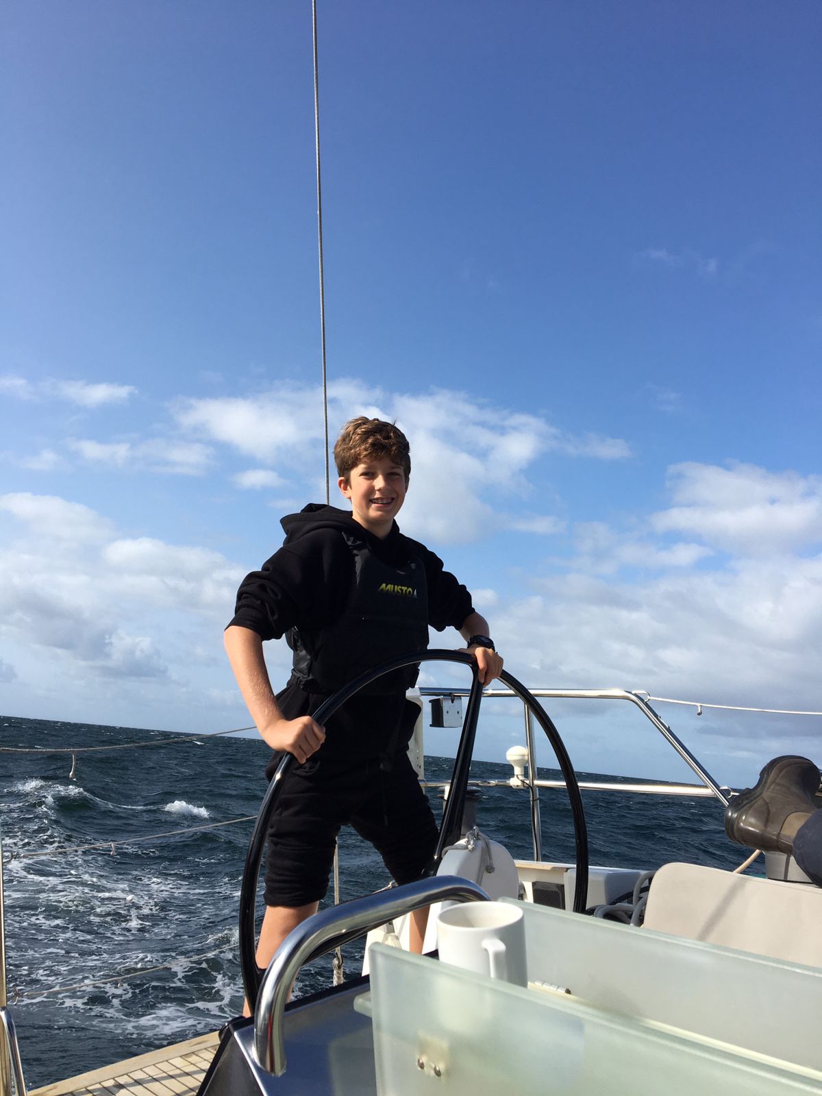Als wir am Montag Morgen aufwachten schien die Sonne auf die Lorelei und wir hatten ein herrliches Frühstück. Als wir das Geschirr fertig abgewaschen hatten und die Zähne geputzt waren durften wir mit dem kleinen Motorboot im Hafen herumfahren. Danach machten wir das Boot bereit zum Segeln. Wir sind dann aus dem Hafen gefahren mit Kurs auf die nächste Dänische Bucht. Der Wind war wieder so stark, dass das Boot sehr schräg lag und wir uns auf dem Weg zum Klo uns sehr anstrengen mussten damit wir nicht hinfallen (so wie Max). Wir haben uns sehr auf die Reise gefreut und auch auf Pauls Abendessen. Leider erfuhren wir kurz darauf, dass es am Dienstag zu viel Wind geben würde und wir unsere Pläne ändern mussten. Die Wettervorhersage war so schlecht, dass wir leider schon frühzeitig fahren mussten und unsere Weltumseglung vorläufig auf Eis legen mussten. Wir haben alles probiert Lorenz zu überreden… aber da bleibt uns wohl nur ein neuer Versuch nächstes Jahr!