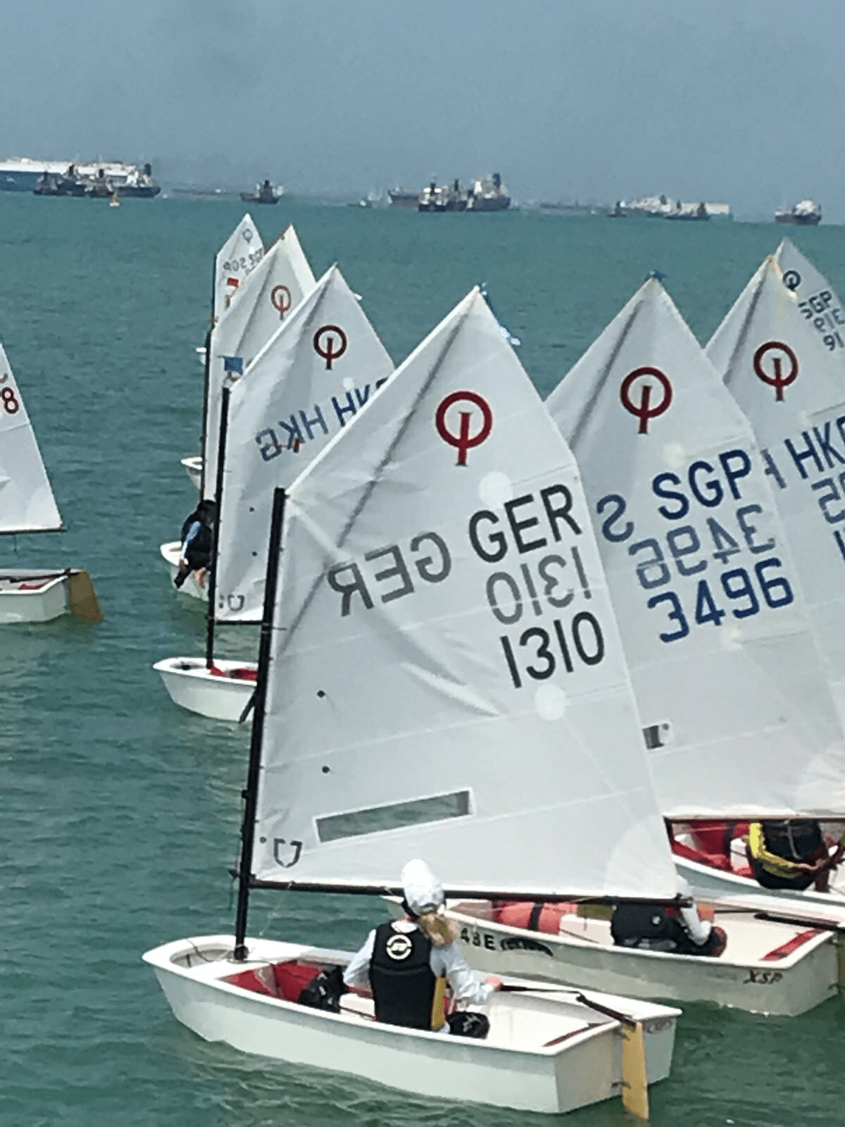 Die Meisterschaft fand im National Sailing Center statt. Der Wind kam meistens erst ab 12:00, dann aber sehr schön, zwischen 7-15 kn, an manchen Tagen ablandig und sehr drehig, viel Strömung bis zu 25m/min und oft choppy Welle. Die Bedingungen waren sehr tricky und toughe Segler am Start. Insgesamt waren es in der Opti-Klasse 204 Starter. Wir sind von vorneherein in einer Gold und einer Silver Fleet gestartet. In der Gold Fleet mit 121 Seglern sind wir in den ersten beiden Tagen 6 Qualifying Races gesegelt und sind danach in Gold A und Gold B für die Final Races aufgeteilt worden. Nach den ersten 3 Races am ersten Tag führte ich mit den Einzelergebnissen 8,2,2! Nach Tag 2 mit weiteren 3 Races (10,4,6) war ich 3. In den Finalrennen bin ich am 3. Tag 13,(13),2 und am 4. Tag 11,6 gesegelt.