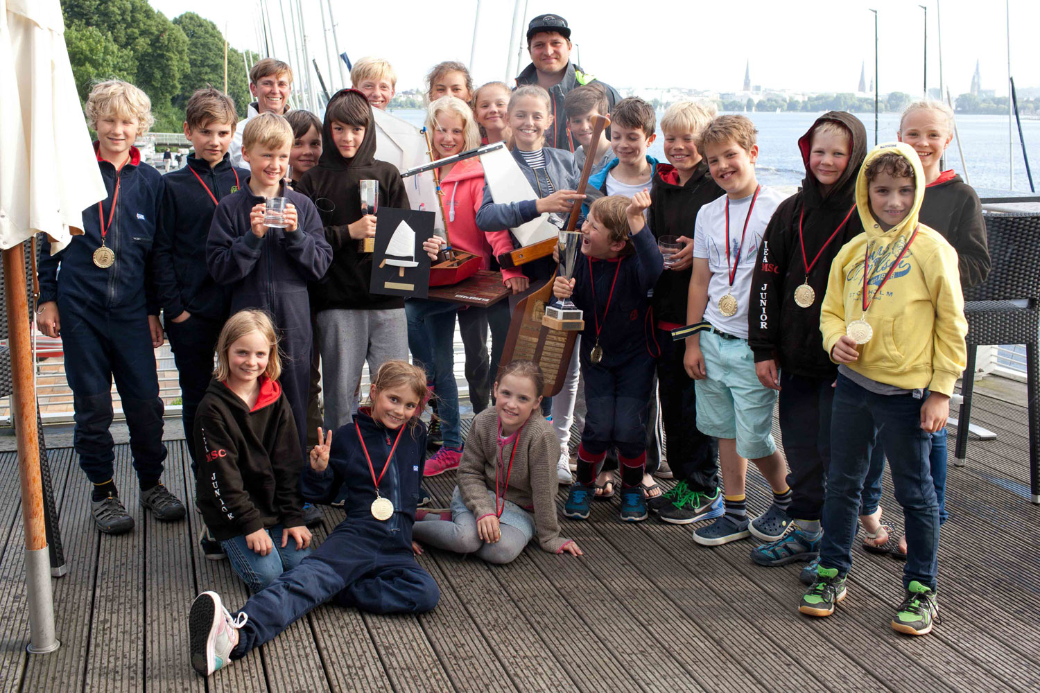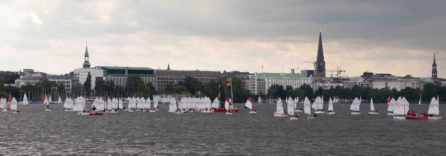 Der MSC hatte die stärkste Fraktion am Start. Von 30 Teilnehmern bei den sechs Wettfahrten im Opti A hatten 15 das Segeln auf der Elbe gelernt. Der Wind auf der Alster zeigt seine ganze Bandbreite angefangen von einer kurzen Flaute bis hin zu Windstärken von 30 Knoten. Zudem war der Samstag besonders anspruchsvoll. Erst nach 18:30 Uhr kamen Segler wieder zur Steganlage des Norddeutschen Regattavereins zurück. Das tat aber der guten Stimmung keinen Abbruch, denn die Versorgung im Clubhaus mit Pizza und belegten Brötchen stillte schnell den großen Hunger nach den langen Stunden auf dem Wasser. Großes Kompliment an eine sehr gute Wettfahrtsleitung; nicht anderes hatte man vom NRV erwartet.