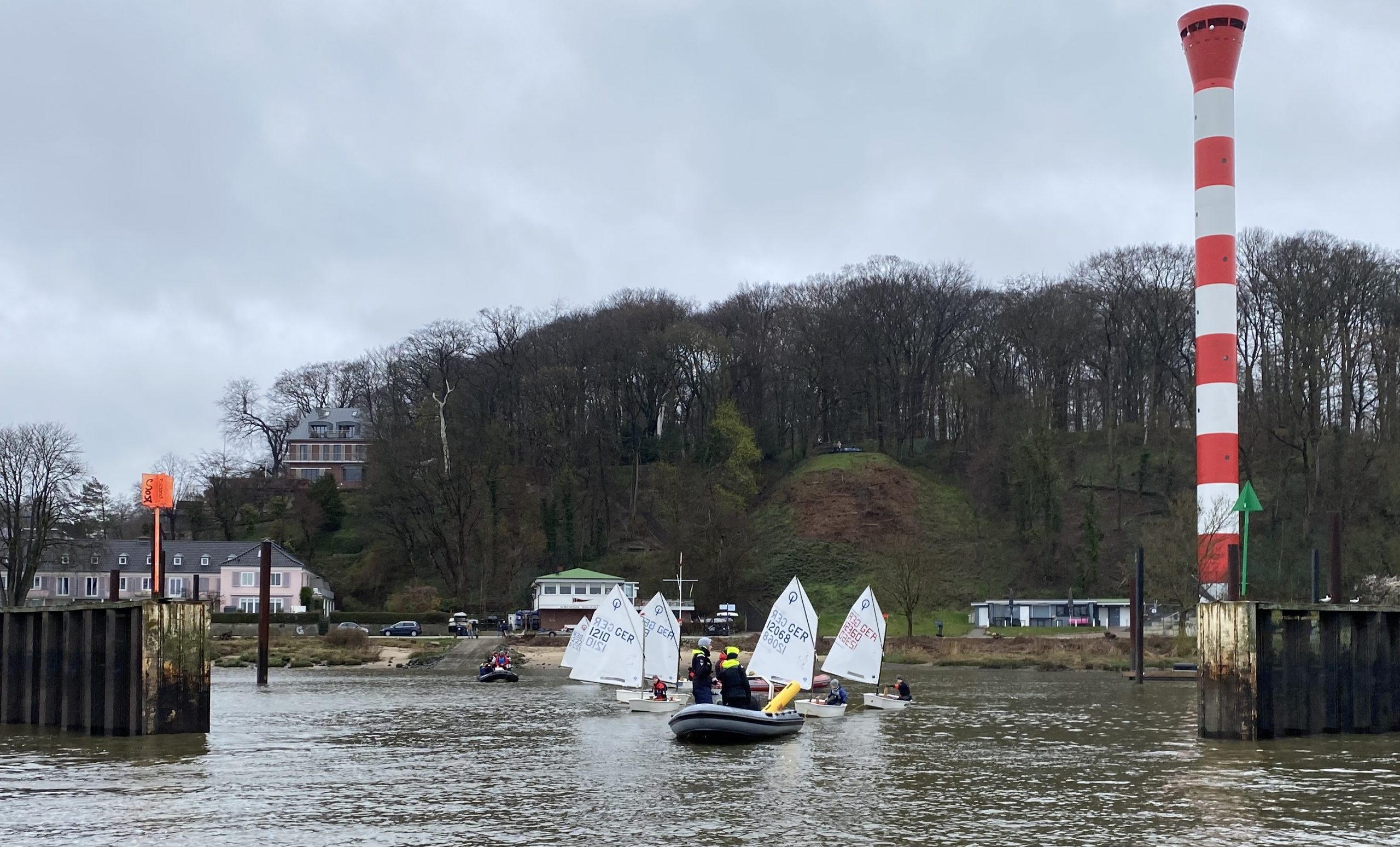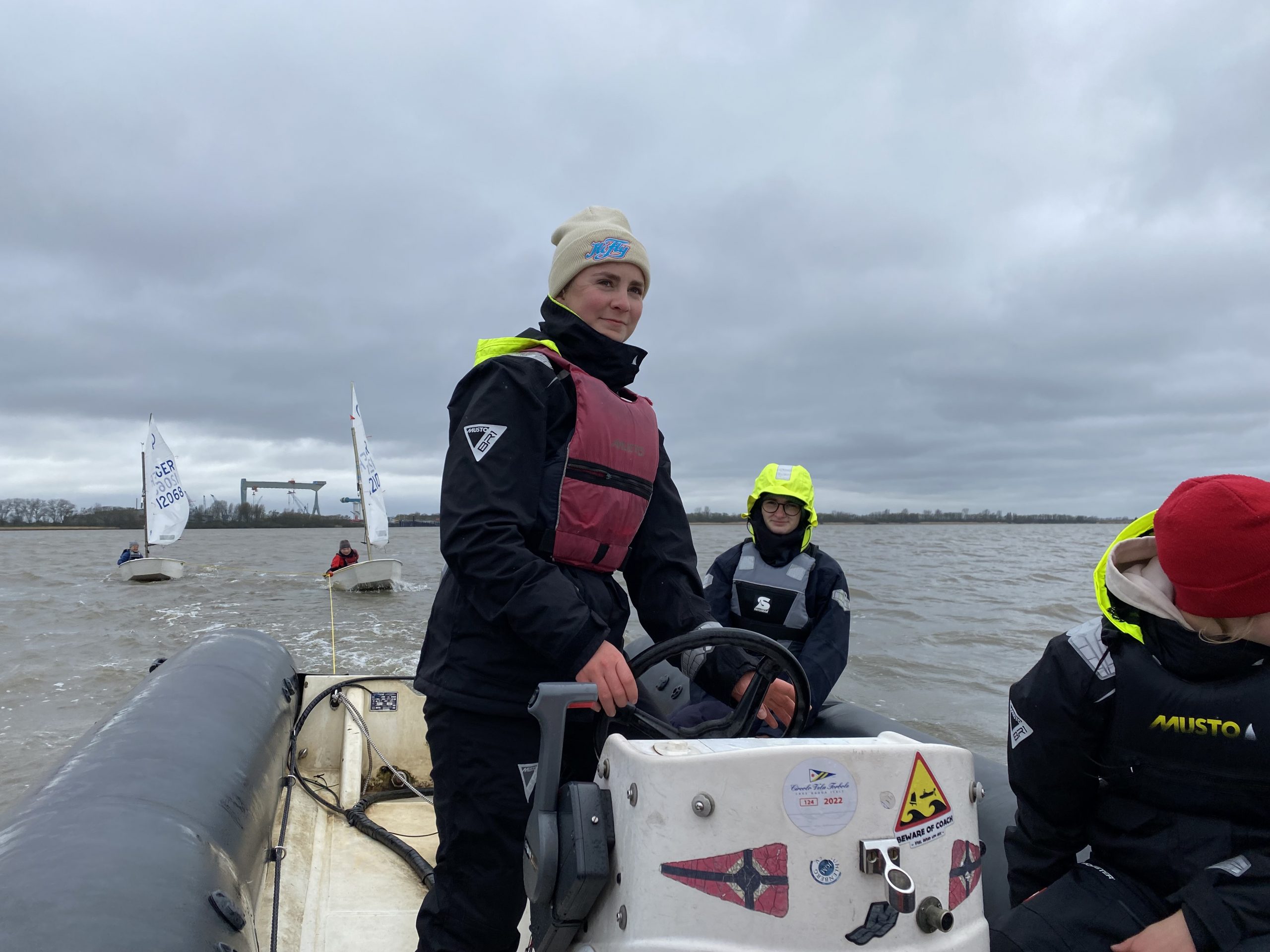 Am 1. April wurde im MSC der Ernstfall geübt. Die Saison geht wieder los und unsere Trainer*innen und jugendliche Co-Trainerinnen sollen möglichst gut vorbereitet sein. So wurde in heiterer Runde, aber eben ohne die üblichen Scherze viel diskutiert und vor allem auch geübt. Das Wetter sorgte für realistische Bedingungen, denn meistens passieren die Dinge ja nicht bei Sonnenschein und Flaute. 7 Kinder aus Opti A und B standen uns Erwachsenen als Versuchskaninchen zur Verfügung und ließen mit sehr viel Geduld und guter Laune eine Übung nach der anderen über sich ergehen. Es wurden Schlepps auf- und abgebaut, gekenterte Boote aufgerichtet und abgeborgen, sowie schwere Bojen ins Motorboot gewuchtet. Das wollten wir den Kindern nämlich dann doch ersparen.