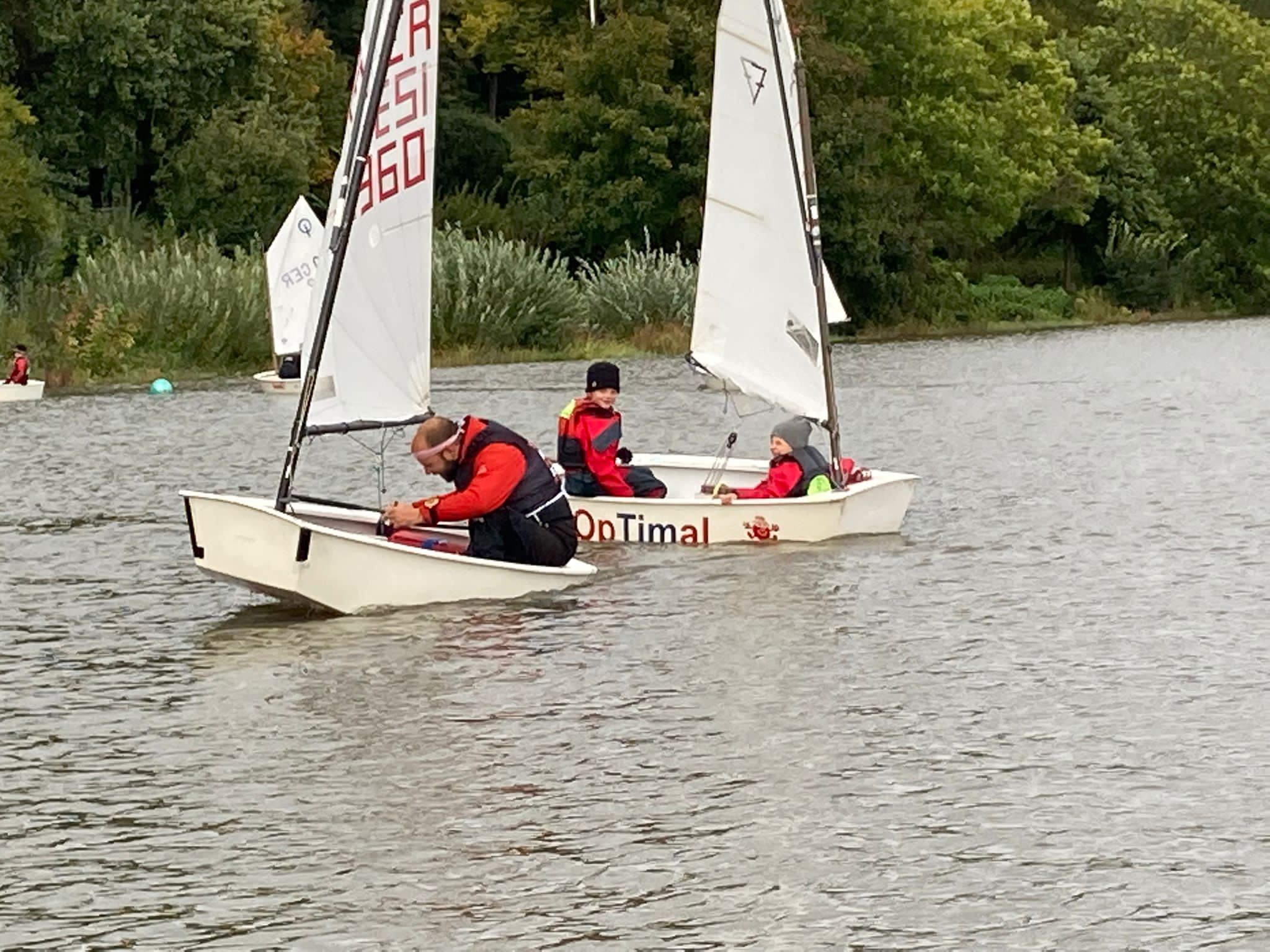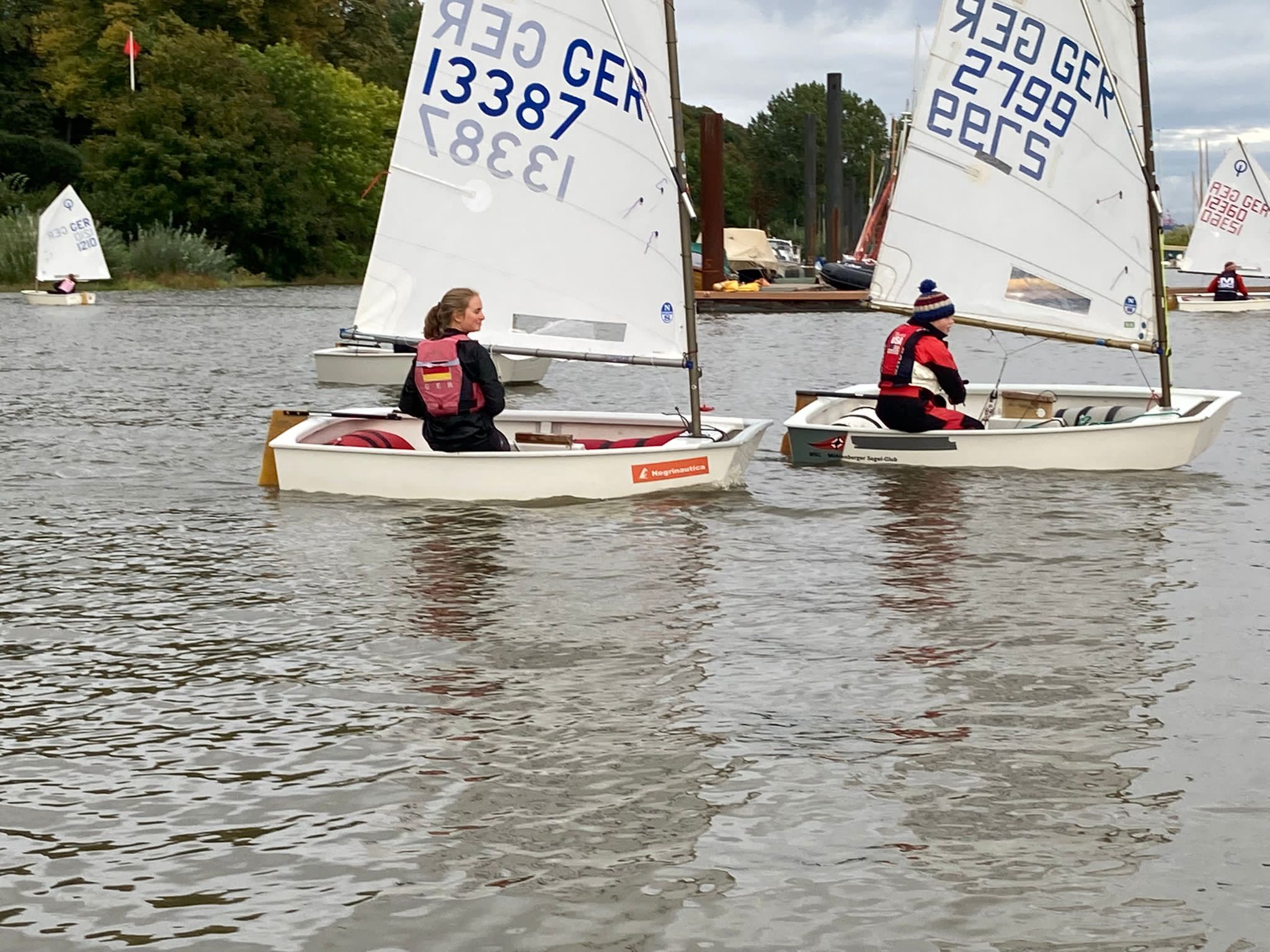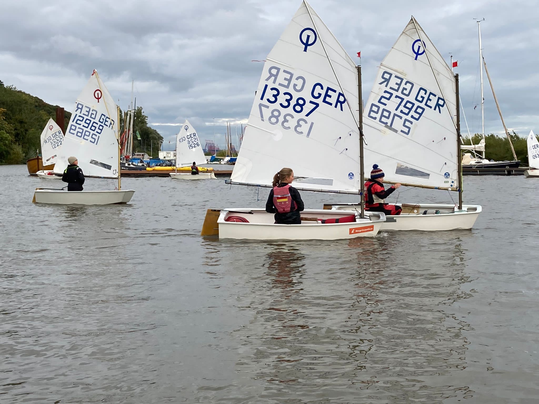 Unsere neuen Anfängerkinder waren mit Paddeln ausgerüstet unterwegs, die 420er Kids zeigten, dass sie noch bestens im Opti zurechtkamen und segelbegeisterte Hunde, unsere Jugendtrainer und Olympioniken komplettierten das Starterfeld. Was für eine Show!