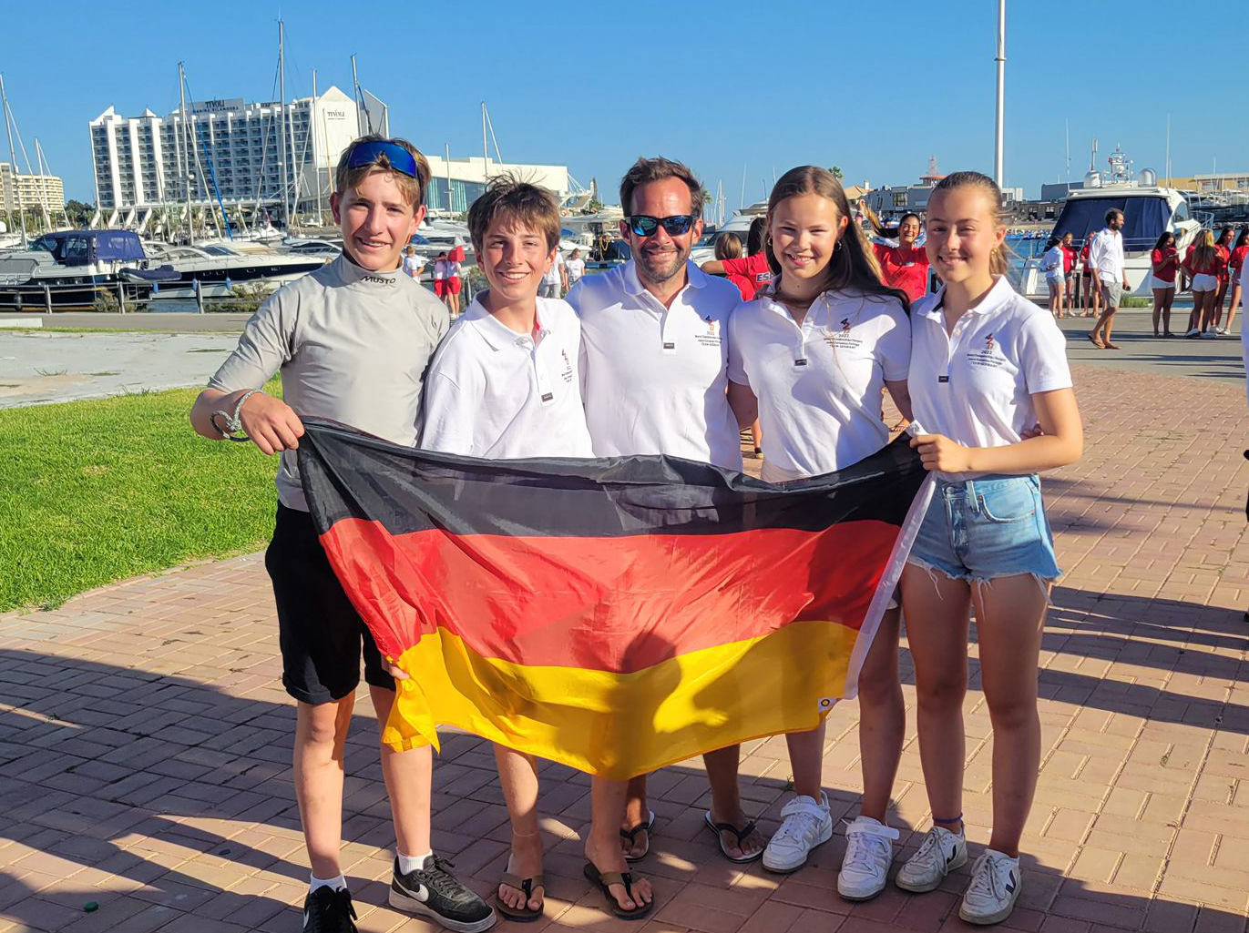 Letzte Woche fand in Vilamoura die 420 JEM statt. Mit traumhaften Bedingungen und viel Wind konnten wir gut ins Vortraining starten, doch leider ließ zu Beginn der Regatta der Wind stark nach, sodass an zwei von sechs Racetagen nicht gesegelt werden konnte. An den letzten zwei Tagen kam der lang ersehnte Wind endlich und wir schlossen somit die Regatta mit einem 17. Platz ab.