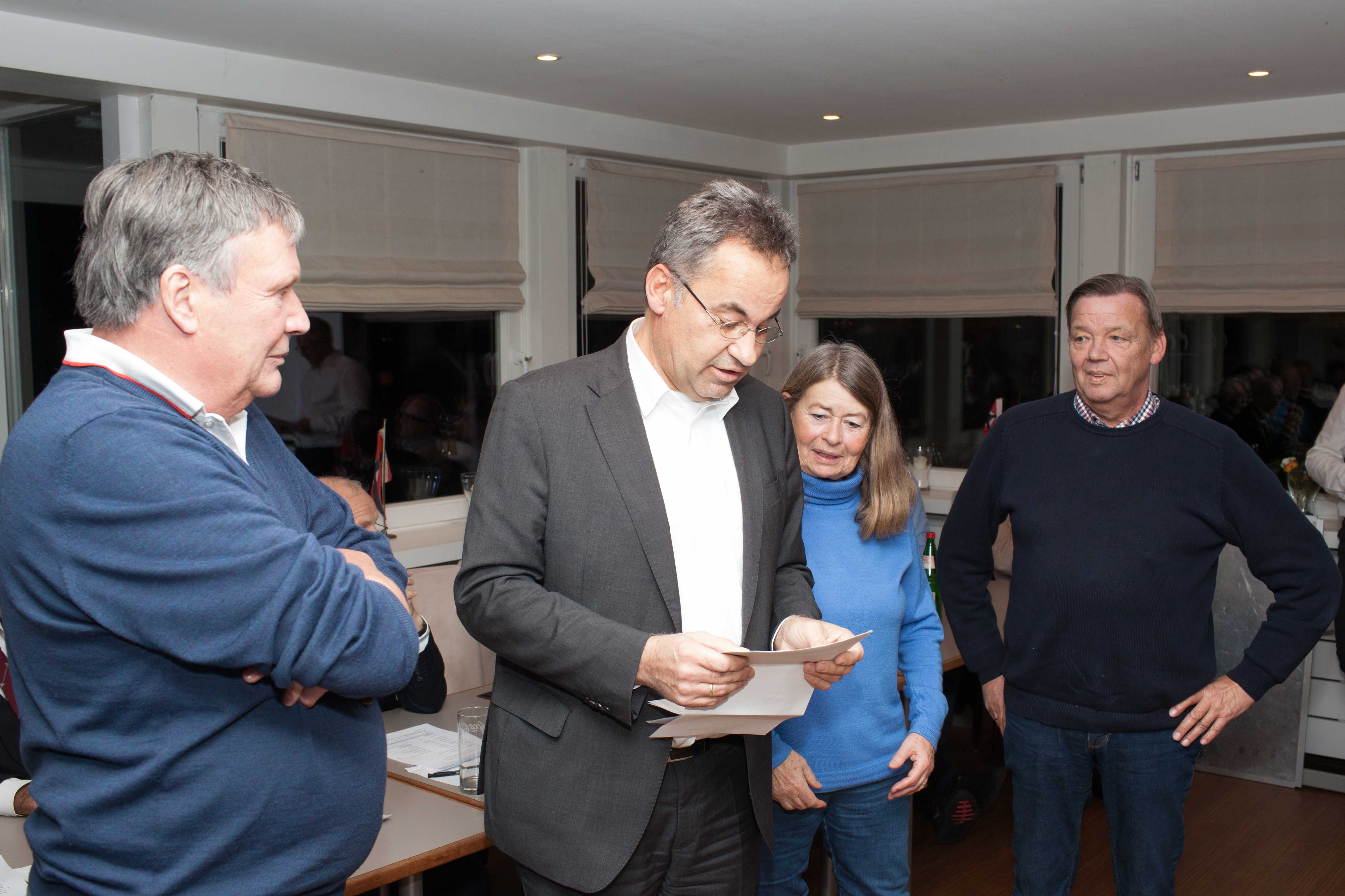 Aber es gab auch ein außergewöhnliches Jubiläum: 160 Jahre Ehrenamt wurden geehrt – unser Wettfahrtleiter Piwi konnte mit drei weiteren Mitgliedern seines Teams: Sabine Ehlers, Heiko Haase und Peter Nell einen donnernden Applaus und ein großes Dankeschön des Vereins entgegennehmen. 40 Jahre stehen die vier nun gemeinsam für unsere MSC Veranstaltungen auf dem Ponton (bzw. in wechselnden Begleitbooten und Startschiffen). Insgesamt bringen sie es auf über 200 Jahre MSC Mitgliedschaft! Wir danken euch sehr für euren unermüdlichen ehrenamtlichen Einsatz und freuen uns auf die kommenden Veranstaltungen, denn 40 Jahre sind natürlich noch lange nicht genug!