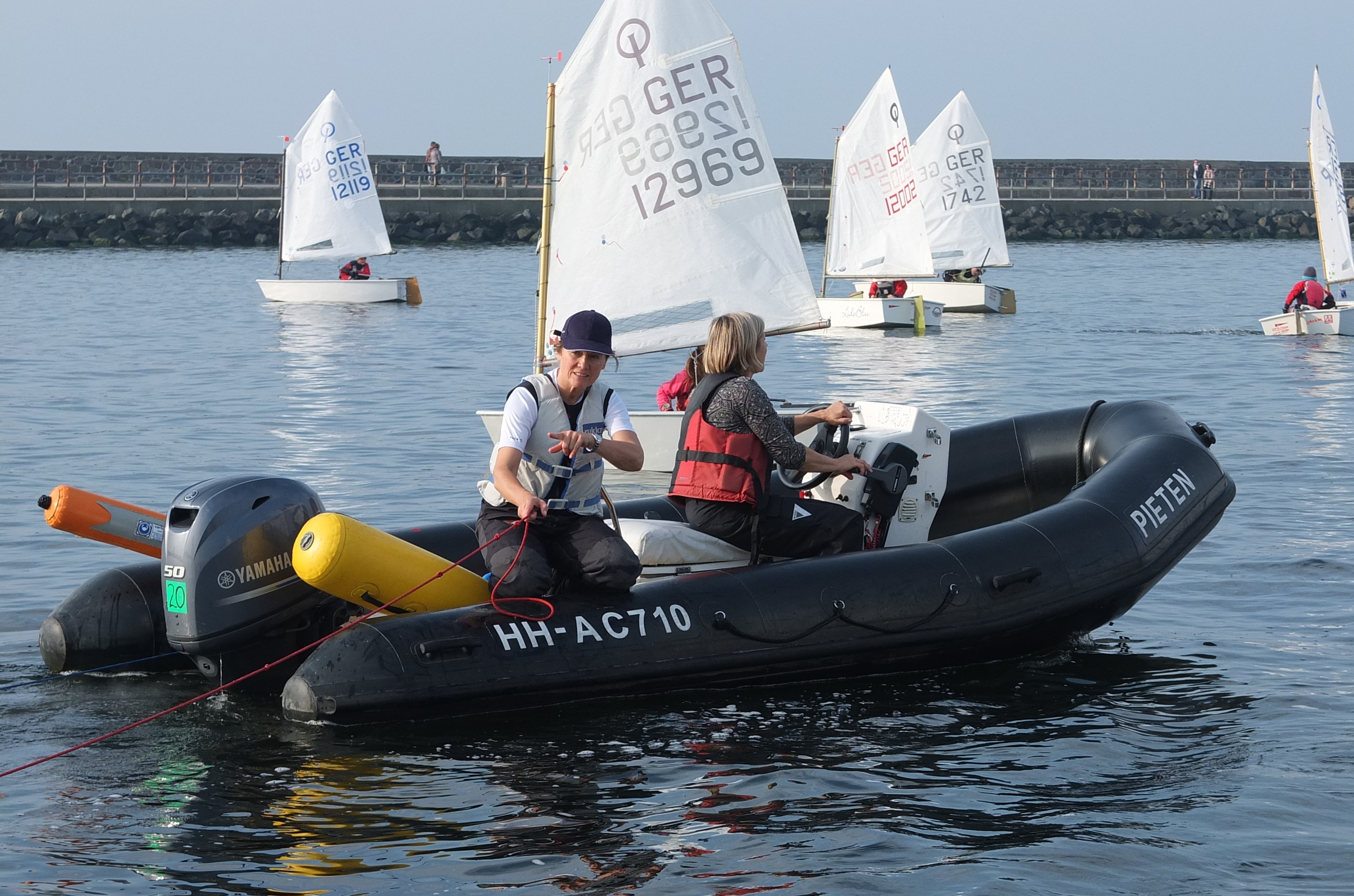 Ideale Bedingungen also, um gleich nach dem schnellen Abladen, Slippen der Motorboote und dem Mittagessen mit den ersten Segeleinheiten zu beginnen. Perfekte Segelbedingungen gab es dann auch an den Folgetagen.