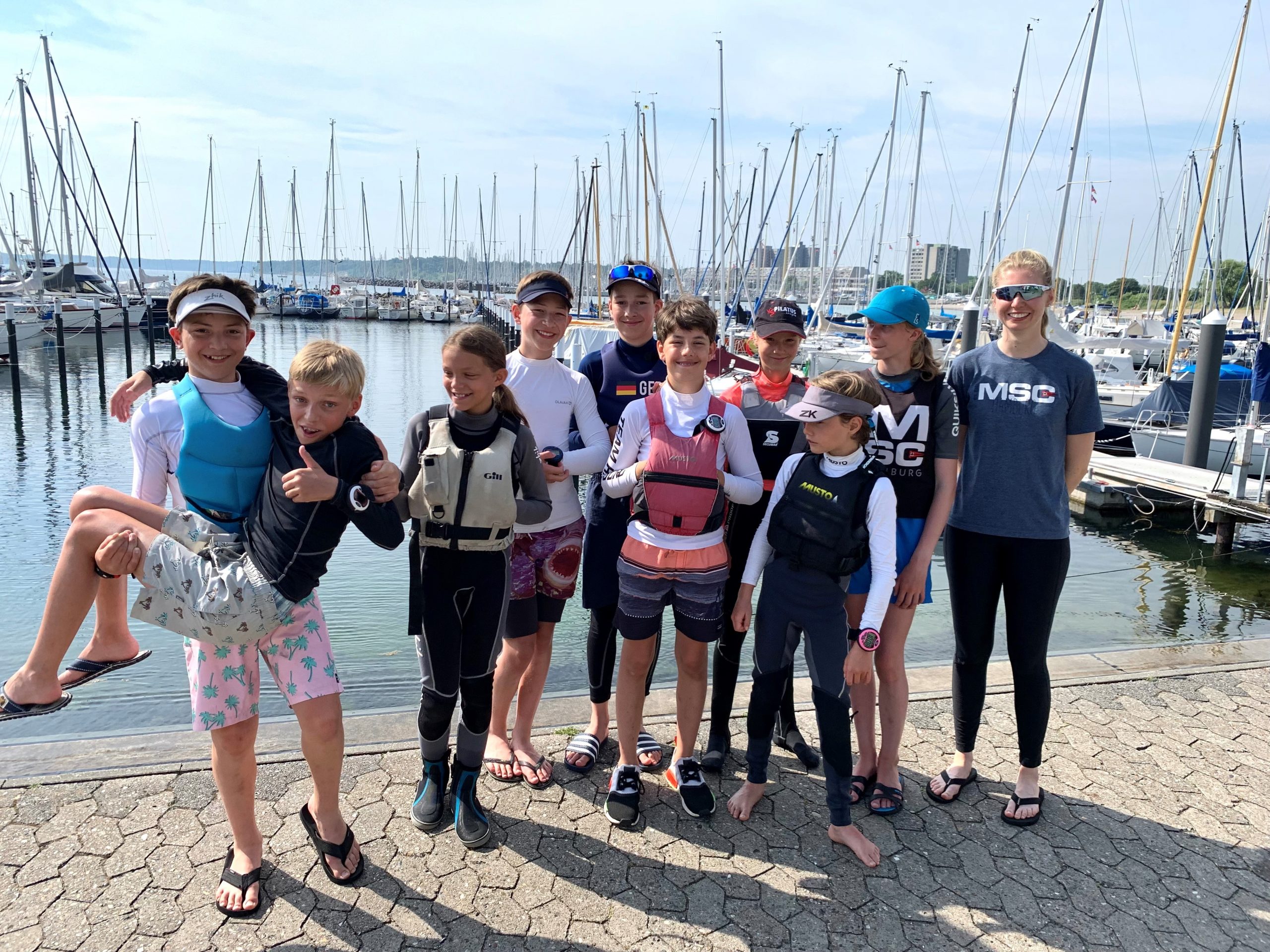 19 Opti-Segler aus dem MSC, A-Segler und schon sehr routinierte B-Segler, haben die erste Ferienwoche im MSC Trainingslager in Kiel verbracht. Laura hat ihre A-Segler trainiert, für die B‘s hat sie Yanic engagiert. Yanic kommt aus Mexiko, hat knapp eine eigene olympische Kampagne verpasst und studiert nun in Kiel Schiffsbau. Alle Kinder haben ihn sehr ins Herz geschlossen. Auf dem Wasser und an Land wurden Laura und Yanic von Kalle als Co-Trainer unterstützt, der mit seiner guten Laune und Fröhlichkeit entscheidend zu diesem tollen Trainingslager beigetragen hat.